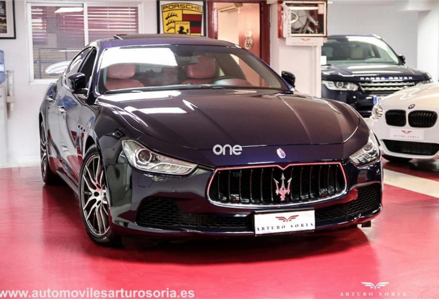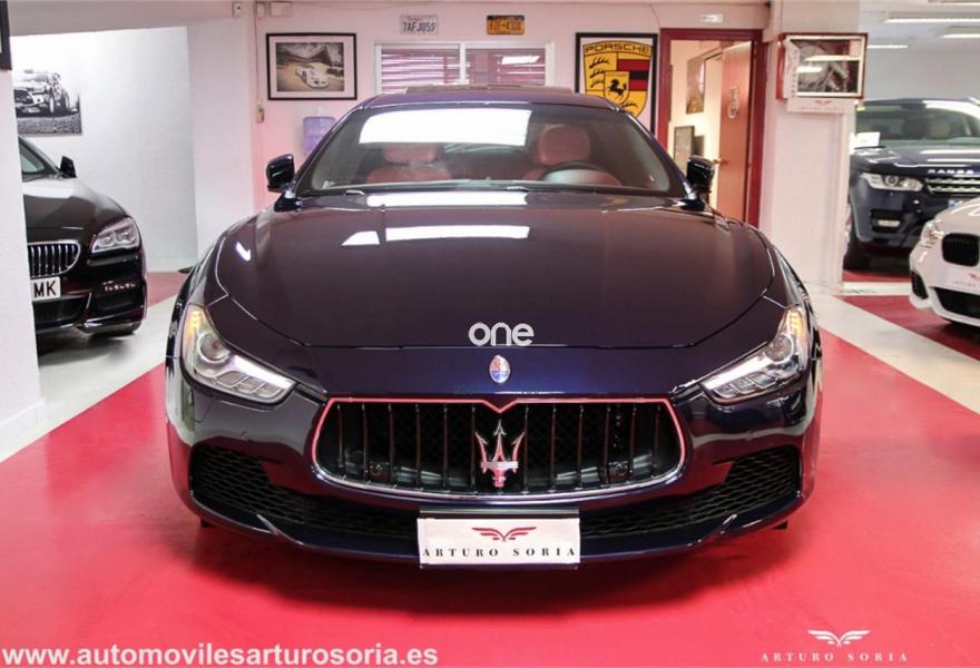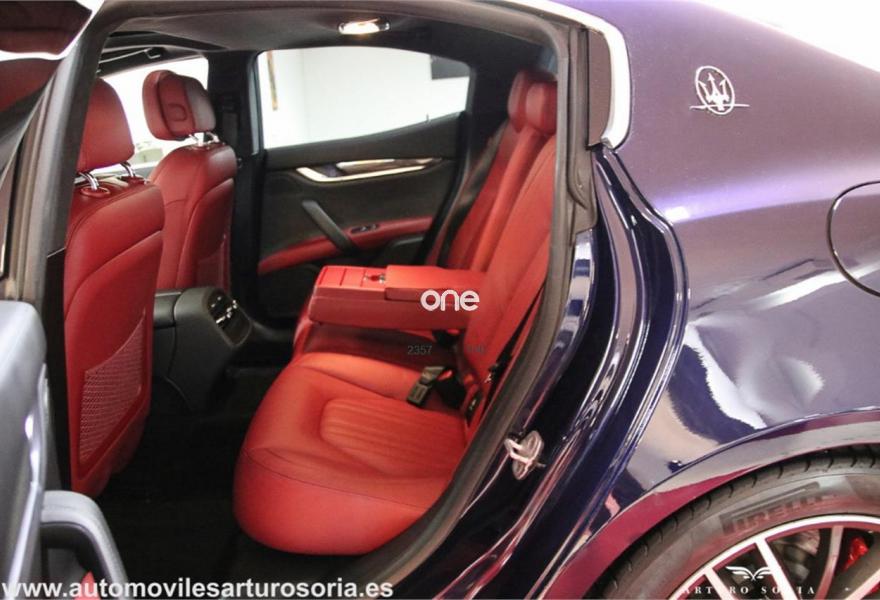 MASERATI Ghibli, Gasolina, año 2014, 44900 kilómetros, color Azul ("Garantia total e historial de mantenimiento"") metalizado, precio 60000€. Sistema de red Wi-Fi,Paquete Executive,Alfombrillas de velour,Tapicería interior en cuero natural,Detalles interiores en fibra de carbono,Paquete Business Plus,Ajuste eléctrico del volante de dirección,Cuero Natural Premium Rosso,Paquete Clima Frío,Pinzas de freno pintadas en rojo,Techo solar eléctrico,Tapizado del techo en Alcántara,Paquete Sport,Llantas de aleación de 19" Sport (neumáticos 245/45 R19 delanteros, 275/40 R19 traseros),Premium pack,Blu Passione (mica),Lunas traseras tintadas,Levas de cambio en la columna de dirección,Suspensión regulable y adaptativa Skyhook,Sensores de aparcamiento. Exclusivo MASERATI Ghibli 3.0 S Q4 410CV.