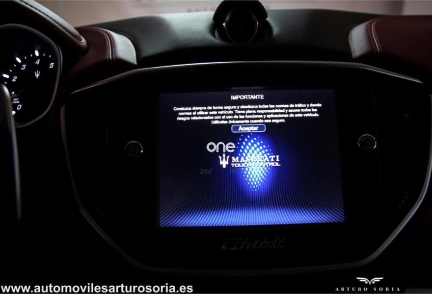 CON TODOS LOS EXTRAS:Color Azul Ferrari ,Faros LED,Techo eléctrico,Keyless go,Suspensión regulable,Control de distancia de aparcamiento+cámara trasera,Libro de revisiones al día Maserati,Control de velocidad,Llantas de 19",Cristales laterales laminados,Retrovisores exteriores calefactables y eléctricos+plegables,Sistema de navegacion por satelite,Asientos eléctricos+Tapiceria de cuero Rojo,Volante de cuero y multifuncional+LEVAS,Sensores de lluvia y luces,Alarma,control por voz,Tracción total permanente y un largo etcétera..