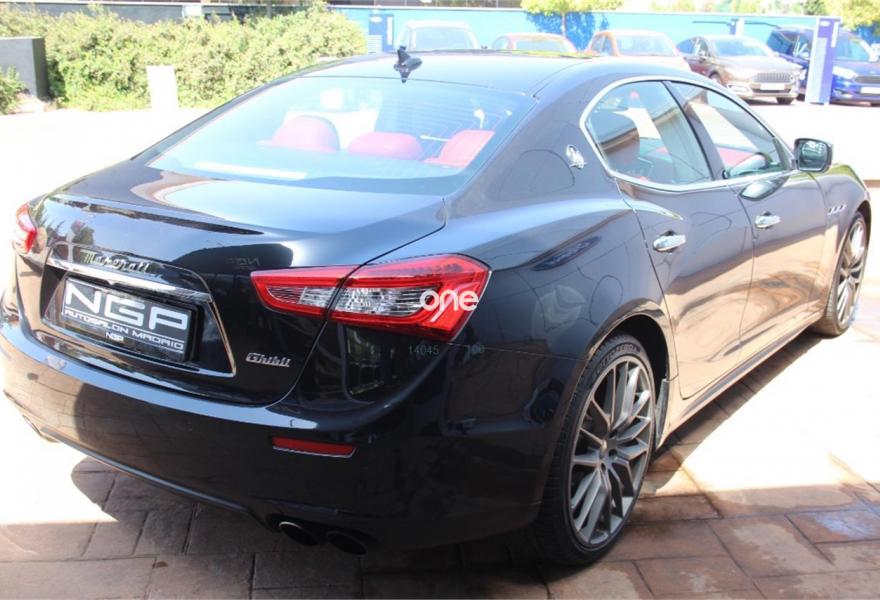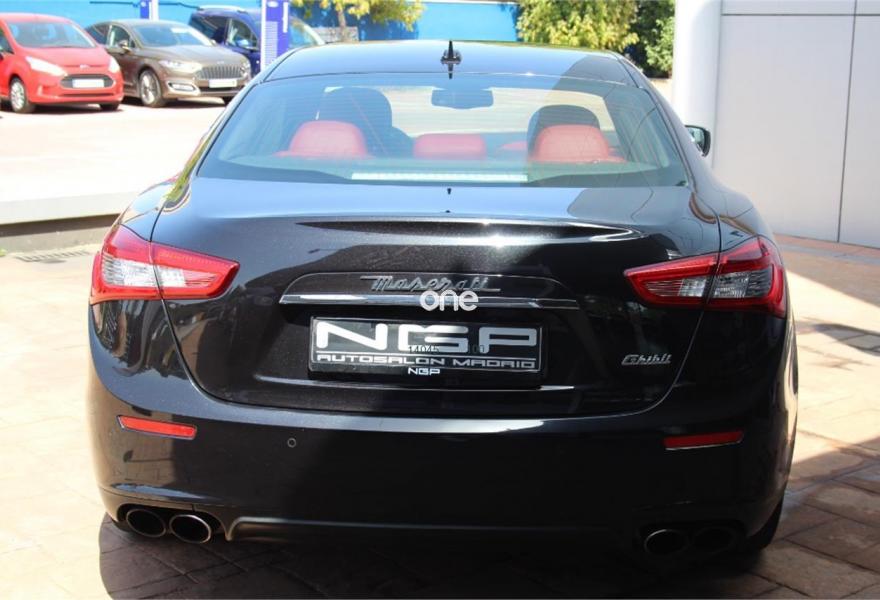 MASERATI Ghibli, Gasolina, año 2014, 125000 kilómetros, color Negro metalizado, precio 43900€. Paquete Executive,Asientos delanteros calefactados,Cuero extendido (asientos más salpicadero en cuero),Detalles interiores en madera lacada Ebony,Sistema de sonido Premium con 10 altavoces,Cuero Natural Premium Rosso,Faros Bi-Xenon con sistema AFS,Sistema de alarma,Asientos delanteros eléctricos de 8 vías, 2 memorías lado conductor,Llantas de aleación de 21" Antracita (neumáticos 245/35 R21 delanteros, 285/30 R21 traseros),Lunas traseras tintadas,Pintura metalizada,Suspensión regulable y adaptativa Skyhook,Sensores de aparcamiento. V6 de 330cv , único propietario , libro de revisiones oficial , dos llaves , muchos extras , entrega inmediata .