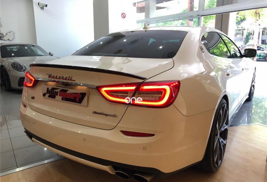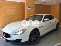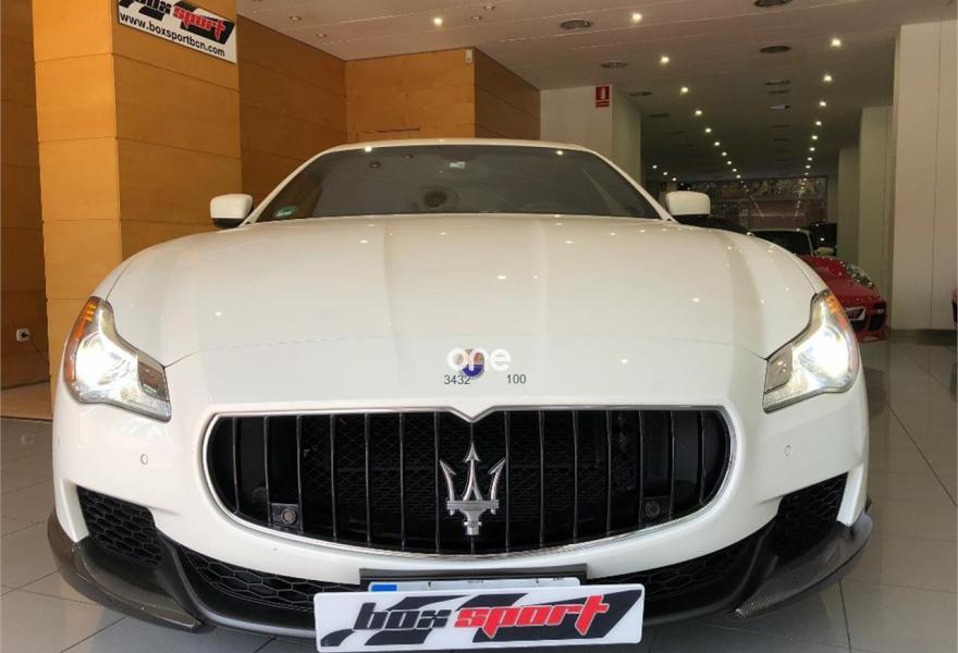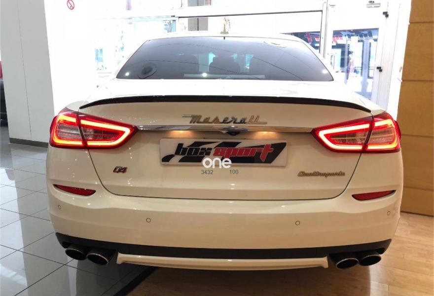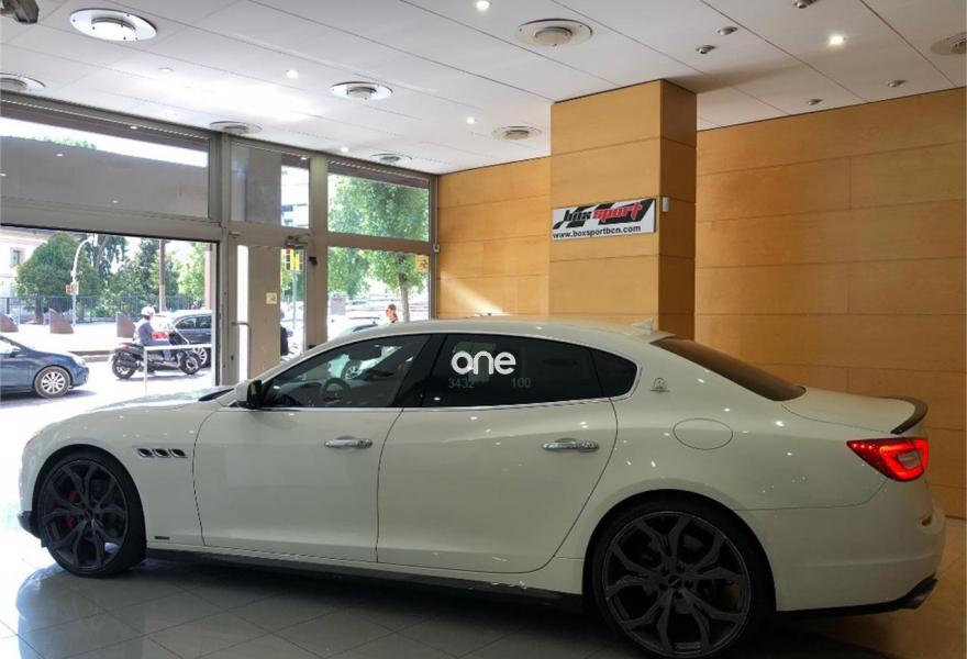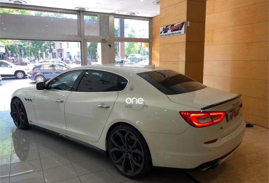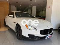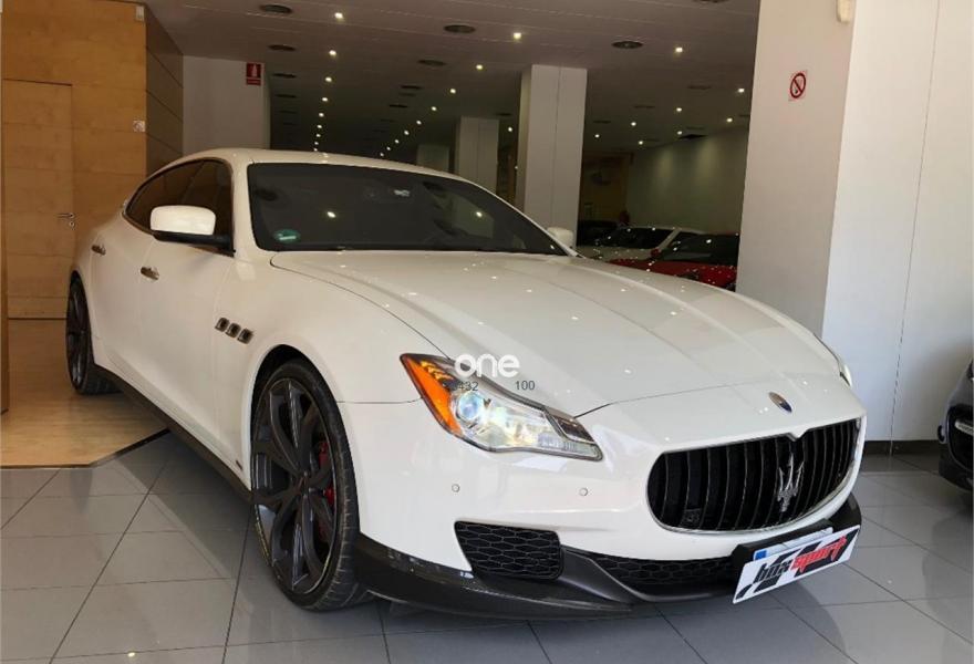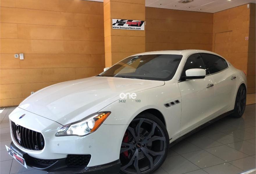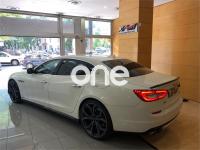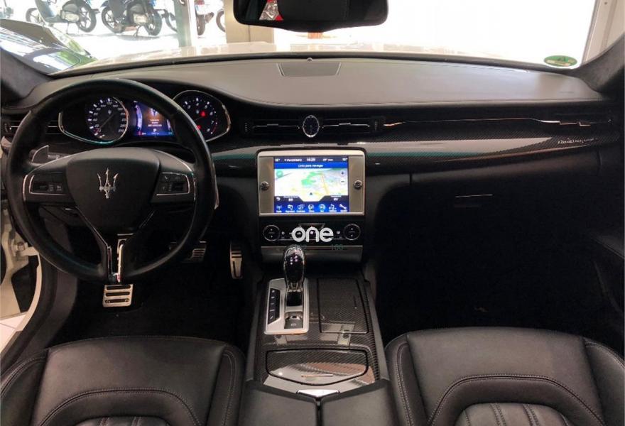 MASERATI Quattroporte, Gasolina, año 2014, 41000 kilómetros, color Blanco metalizado, precio 109000€. Kit fumador,Terminación interior en fibra de carbono,Cuero Natural Premium Poltrona Frau Nero,Tapicería interior en cuero natural,Pinzas de freno de color rojo,Techo solar,Techo y pilares en Alcantara,Volante de dirección en cuero con inserciones de fibra de carbono,Bianco (pastel),Pintura metalizada,Maserati Active Shifting (levas de cambio de aluminio en la columna de la dirección). Vehículo en muy buen estado con todo el mantenimiento en servicio oficial Maserati. Unidad equipada con preparación Novitec (augmento de potencia a 460CV, suspensiones deportivas, llantas forjadas de 22'', taloneras y spoilers de fibra de carbono, etc), tapicería completa de cuero, techo solar, navegador, asientos eléctricos con memorias y calefactables, cambio de marchas con levas de aluminio en el volante, volante de fibra de carbono, acabados interiores en fibra de carbono, sensores de aparcamiento con cámara trasera, sistema keyless, teléfono Bluetooth, etc. Cambio de nombre y garantía incluidos en el precio. .