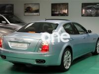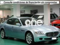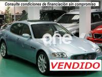 MASERATI Quattroporte, Gasolina, año 2005, 69000 kilómetros, color Azul , precio 29900€. "Comfort pack" Asientos Delanteros,"Comfort Pack" Asientos Traseros,Asientos Delanteros Calefactados,Asientos Traseros Calefactados,Detalles en Madera: Caoba,Cargador de CD (Blaupunkt, 5 discos),Kit Telefono GSM,Retrovisores int/ext fotosensibles,Techo Solar,Pinura Metalizada,Pintura Bajo Muestra,Rueda de Repuesto (Tamaño Reducido),Sensores de Aparcamiento Tras y Del,Sensores de Aparcamiento Traseros. """MASERATI QUATTROPORTE 400C.V AUTOMÁTICO""" VEHÍCULO NACIONAL, TODAS LAS REVISIONES AL DÍA EN CONCESIONARIO OFICIAL MASERATI SANTOGAL CON LIBRO DE MANTENIMIENTO QUE LO ACREDITA, UN SOLO PROPIETARIO, NO FUMADOR, NO PRESENTA EL MAS MÍNIMO ROCE INTERIOR O EXTERIOR ESTADO IGUAL A NUEVO, COCHE DE REPRESENTACIÓN DE EMPRESA USADO CON CHOFER, CERTIFICADO DE NO HABER SUFRIDO GOLPE. Equipamiento: Pintura especial fuera de carta, Llantas 20 Pulgadas, Sensores de Aparcamiento, Techo Solar de Cristal, Paquete de Aluminio Exterior, Sistema de Navegación, Teléfono integrado Bluetooth, Asientos Especiales con Costuras en Azul, Volante en Piel Azul, Cargador de Cd, Control de velocidad, Volante Multifunción, Levas cambio F1, Asientos calefactados Delanteros y traseros, Asientos Traseros Eléctricos, Sistema de Sonido BOSE-SOUND-SYSTEM, Madera Interior, Espejos Plegables Electricamente, Espejos fotosensibles, Etc, Etc, Etc... ÚNICO EN ESPAÑA.......TRANSFERENCIA INCLUIDA.... Gracias por su Confianza. .