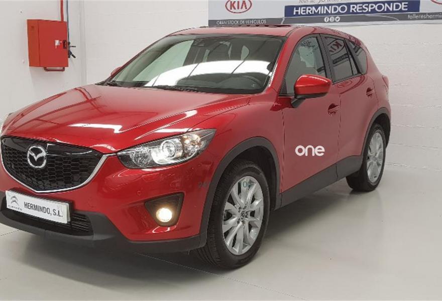 MAZDA CX5, Diesel, año 2014, 101000 kilómetros, color Rojo metalizado, precio 17500€. Tapicería Luxury negra (cuero),Pintura metalizada,Soul Red (metalizado). GRUPO HERMINDO SL