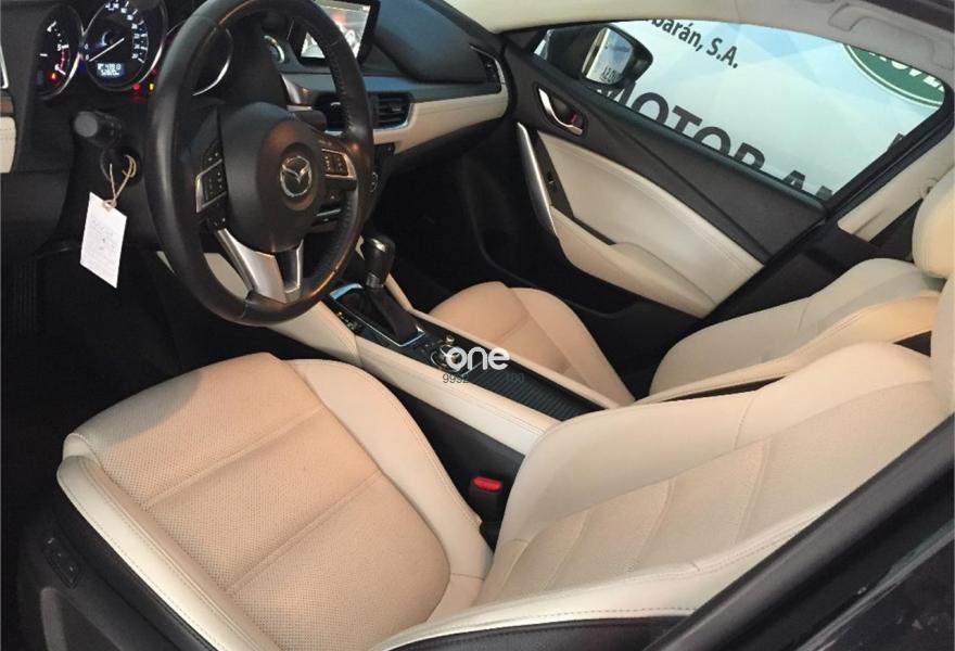 MAZDA Mazda6, Diesel, año 2015, 52800 kilómetros, color Negro metalizado, precio 24995€. Jet Black (mica). Automático, pantalla 7" táctil, climatizador de doble zona, mandos al volante, asientos elétricos, elevalunas elétricos,tapicería de cuero blanco hueso, salpicadero retoques en cuero,techo panorámico, vehículo en perfecto estado..