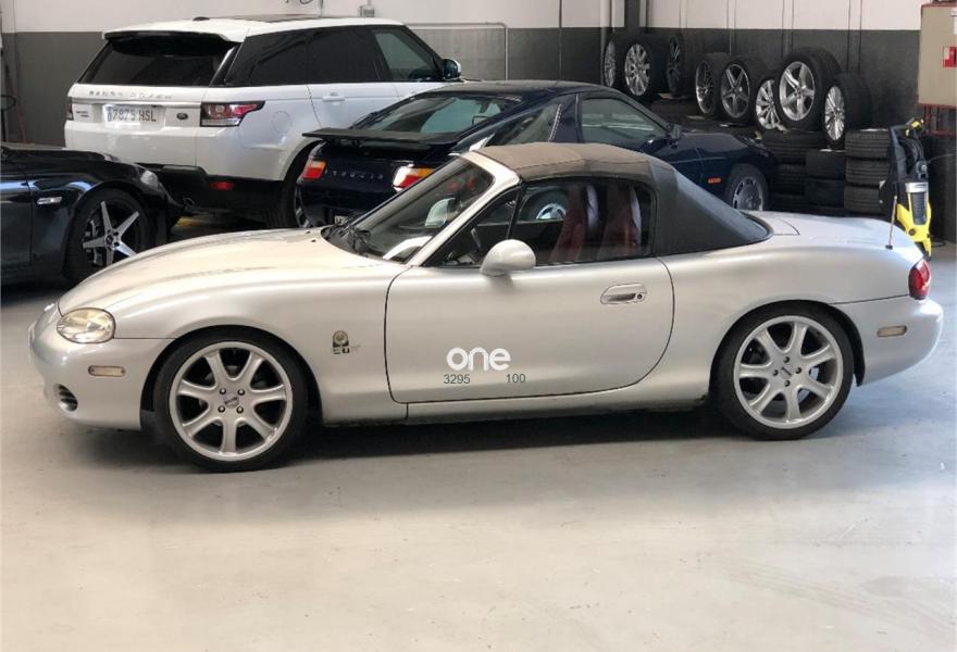MAZDA MX5, Gasolina, año 2002, 140000 kilómetros, color Gris / Plata metalizado, precio 6900€. Pintura metalizada,Seguridad Mazda. VEHICULO MUY EXCLUSIVO SERIE LIMITADA ''MEMORIES'' GTR MUY POCAS UNIDADES, EQUIPA CUERO ESPECIAL EN COLOR ROJO, VOLANTE DE CUERO NARDI, SUSPENSION DEPORTIVA, LLANTAS ESPECIALES DE ALEACION LIGERA, FAROS DE LED, MANTENIMIENTO AL DIA COMPLETO CON SUS LIBROS DE MANTENIMIENTO AL DIA, Y SUS 2 LLAVES CON MANDO, CAPOTA EN PERFECTO ESTADO DE CONSERVACION Y PERFECTO MECANICAMENTE., AUTENTICO CAPRICHO, MUY DIVERTIDO DE CONDUCIR YA QUE ES UN DEPORTIVO CABRIO PURO.