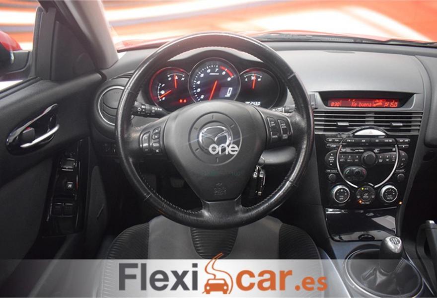 MAZDA RX8, Gasolina, año 2007, 89000 kilómetros, color Rojo metalizado, precio 7590€. Tela Negra,Velocity Red (mica). FLEXICAR: Más de 1500 coches en stock