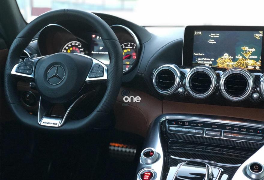 MERCEDES-BENZ AMG GT, Gasolina, año 2016, 9990 kilómetros, color Blanco (DIAMANTE DESIGNO) , precio 117990€. Asientos AMG Performance,Asientos calefactados para conductor y acompañante,Cuero Exclusivo napa STYLE,Kit de memorias,Kit fumador,Techo interior designo de microfibra DINAMICA en color negro,Radio Digital (DAB),Sistema de sonido Burmester® High-End 3D surround,Control del ángulo muerto,Cuero napa Exclusivo Marrón Castaña/Negro,Luces de carretera automáticas,Paquete AMG Night,Paquete de protección antirrobo,Sistema de sonido surround Burmester®,Techo panorámico,Red separadora del espacio de carga para protección de los ocupantes,Blanco Diamante BRIGHT (designo),Cristales calorífugos tintados oscuros,Llantas de aleación AMG de 19"/20" y 5 radios color negro mate y pulidas a alto brillo, 265/35, 295/30,Pintura designo blanco diamante bright,Sistema de escape AMG Performance conmutable con dos embellecedores cromados integrados en las salidas de escape,Supresión de distintivo de modelo en la tapa del maletero,Tren de rodaje deportivo AMG RIDE CONTROL con sistema de amortiguación ajustable,Cámara de marcha atrás,Extintor,Sistema PRE-SAFE®. ESPECTACULAR EXCLUSIVA unidad de Mercedes-Benz AMG GT 2017 en estado de REESTRENO y absolutamente equipado.