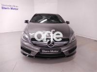 MERCEDES-BENZ Clase A, Gasolina, año 2015, 17064 kilómetros, color Gris / Plata metalizado, precio 52900€. Gris Montaña (metalizado),Asientos AMG Performance,Paquete Exclusivo,Paquete AMG Night,Paquete Retrovisores,Detector automático de silla infantil en asiento acompañante AKSE,Paquete de alumbrado y visibilidad,Pinzas de freno en color rojo,Control de ángulo muerto,Asiento acompañante con ajuste eléctrico y función de memoria,Climatizador automático THERMOTRONIC,Ayuda activa para aparcar (incl. Parktronic),Volante AMG Performance en napa negro/microfibra DINAMICA,Asiento del conductor de ajuste eléctrico con función de memoria,Apoyabrazos abatible y desmontable con portavasos doble en plazas traseras,Calefacción eléctrica asientos delanteros,Techo corredizo panorámico eléctrico de cristal,Tren de rodaje AMG Performance,COMAND Online APS con disco duro de navegación, incluye Bluetooth y Linguatronic,Interfaz universal en guantera para distintos equipos móviles de audio,Luces de carretera automáticas,Llantas de aleación AMG de 19" multirradio, color negro mate y pestaña de llanta pulida a alto brillo, 235/35,Cristales calorífugos tintados oscuros en ventanillas y luneta traseras,Equipo de escape AMG Performance,Intelligent Light System,Cuero Negro,Arranque sin llave KEYLESS-GO. Vehículo de gerencia completamente equipado, en perfecto estado y revisado por nuestro concesionario MERCEDES-BENZ.