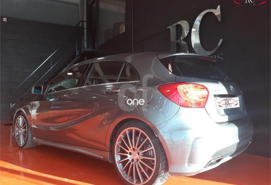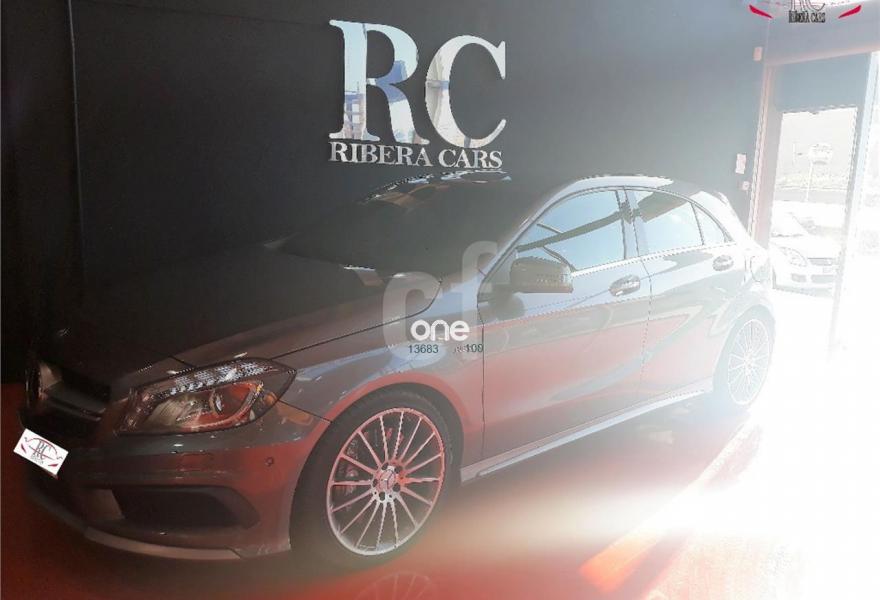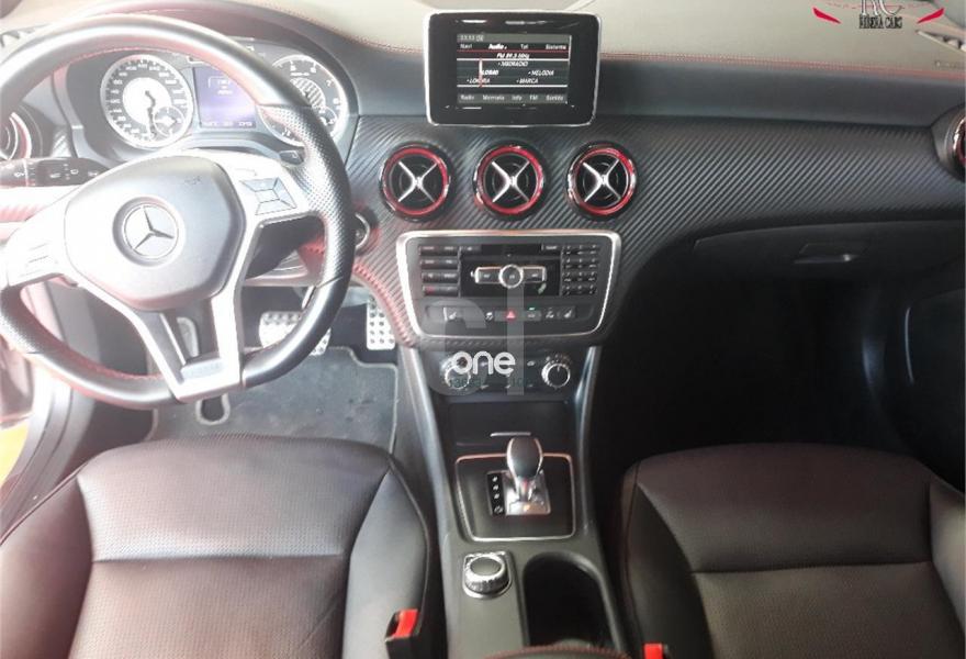 MERCEDES-BENZ Clase A, Gasolina, año 2014, 45000 kilómetros, color Gris / Plata metalizado, precio 32990€. Calefacción eléctrica asientos delanteros,Navegador Becker MAP PILOT,Módulo de teléfono con Bluetooth (perfil SAP),Radio Digital (DAB),Paquete aerodinámico AMG,Paquete de alumbrado y visibilidad,Paquete exterior de fibra de carbono AMG,Supresión de los cinturones de seguridad designo en rojo,Tela Messancy/símil cuero ARTICO Negro,Gris Montaña (metalizado),Llantas de aleación AMG de 19" multirradio, color tris titanio y pulidas a alto brillo, 235/35,Ayuda activa para aparcar (incl. Parktronic). MERCEDES-BENZ A 45 AMG 4MATIC 360CV en color exterior gris "Montaña" matalizado con el interior completamente deportivo en cuero-tela negro con costuras y cinturones rojos.