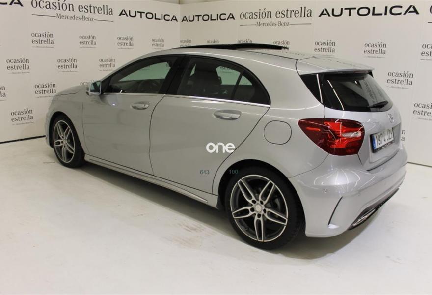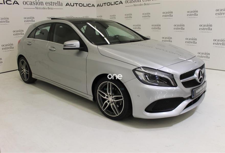 MERCEDES-BENZ Clase A, Diesel, año 2017, 26427 kilómetros, color Gris / Plata metalizado, precio 25400€. Audio 20 CD con preinstalación para Garmin MAP PILOT,Línea AMG Line,Navegador Garmin® MAP PILOT,Arranque sin llave KEYLESS-GO,Paquete Retrovisores,Techo corredizo panorámico eléctrico de cristal,Tela Messancy/símil cuero ARTICO Negro,Plata Polar (metalizado),Pintura metalizada,7G-DCT cambio automático de doble embrague,DYNAMIC SELECT,Cámara de marcha atrás con líneas de guía en la pantalla,Piloto automático para aparcar. Mercedes-Benz Certified. Vehículos seminuevos de Mercedes Benz con kilometraje certificado, con menos de 150.000 kms y hasta 6 años de antigüedad, revisados cuidadosamente para que puedas disfrutar de tu vehículo como si lo fueras a estrenar.