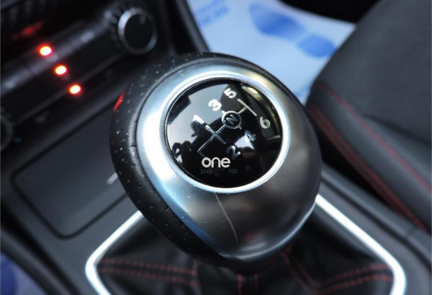 - Asientos con tapicería de alcántara/cuero en color gris con costuras en color rojo