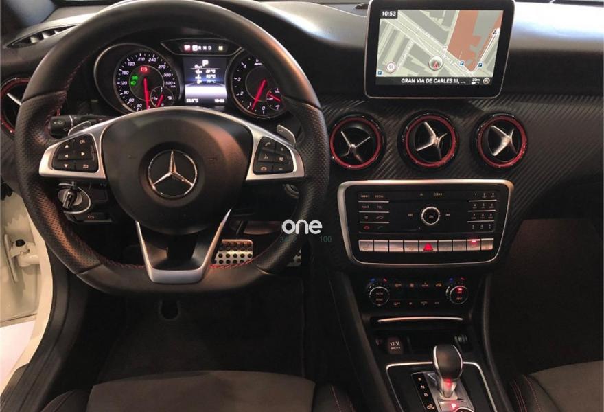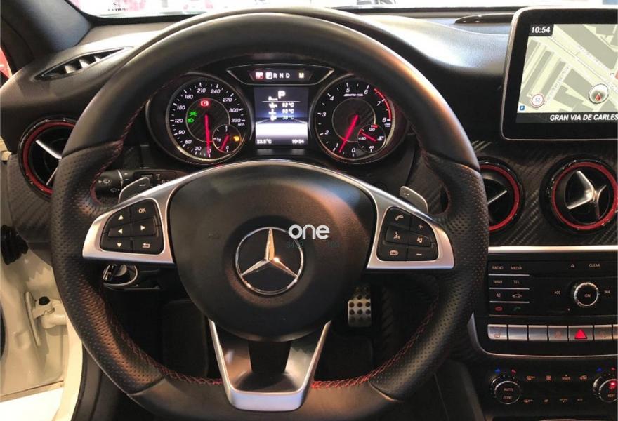 MERCEDES-BENZ Clase A, Gasolina, año 2016, 33000 kilómetros, color Blanco metalizado, precio 45900€. Navegador Garmin® MAP PILOT,Arranque sin llave KEYLESS-GO,Cuero Negro,Llantas de aleación AMG de 18" y 5 radios dobles, 225/40,Equipo de escape AMG Performance,Cámara de marcha atrás con líneas de guía en la pantalla. Vehículo en perfercto estado con todo el mantenimiento hecho en servicio oficial Mercedes. Unidad equipada con asientos eléctricos con memorias y calefactados, techo panorámico, navegador, sistema de escape deportivo, tapicería de cuero, teléfono Bluetooth, sensores de aparcamiento con cámara, sistema Keyless, llantas de aluminio de 18'', pinzas de freno pintadas en rojo, etc. .