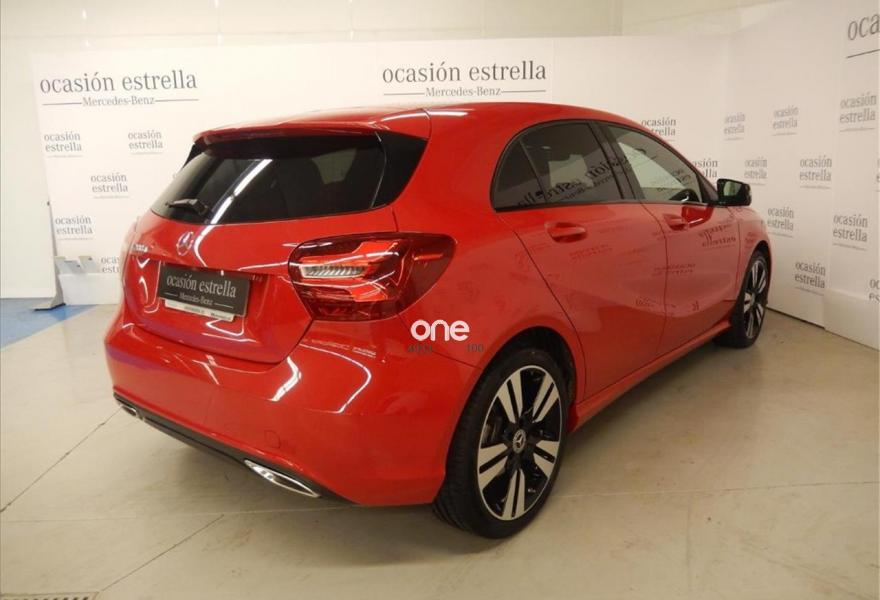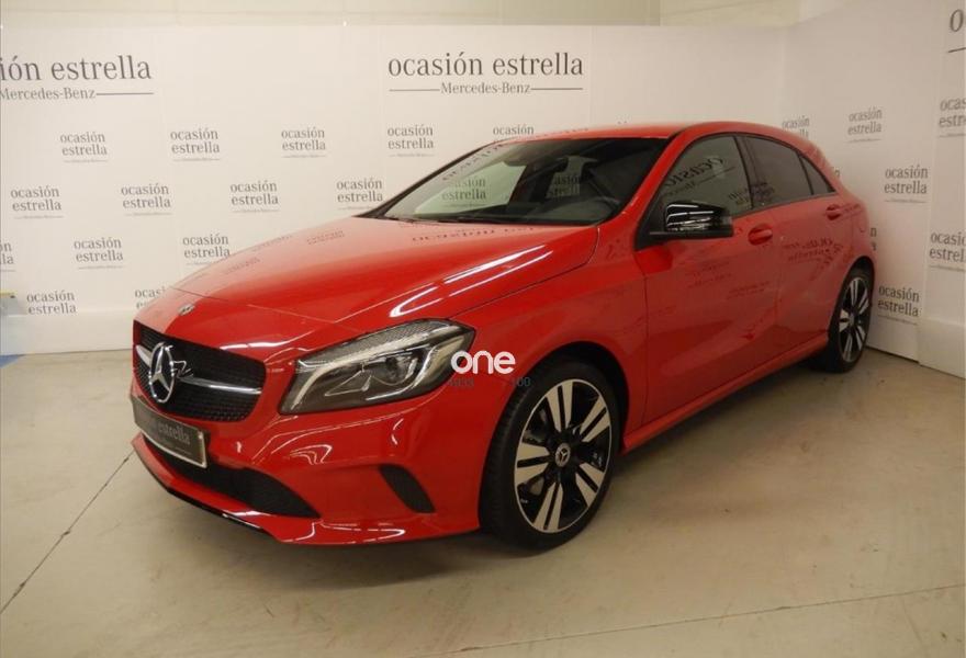 MERCEDES-BENZ Clase A, Diesel, año 2017, 4736 kilómetros, color Rojo , precio 25600€. Línea Urban,Paquete Night,Paquete Retrovisores,Rojo Júpiter (sólido),Cámara de marcha atrás con líneas de guía en la pantalla,Llantas de aleación de 18" y cinco radios dobles (color negro brillante y pulidas alto brillo), 225/40,Navegador Garmin® MAP PILOT,Cristales calorífugos tintados oscuros en ventanillas y luneta traseras,Símil de cuero ARTICO /tela Messancy Negro. Vehículo de gerencia completamente equipado, en perfecto estado y revisado por nuestro concesionario MERCEDES-BENZ.