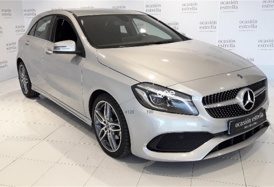 MERCEDES-BENZ Clase A, Diesel, año 2018, 5000 kilómetros, color Gris / Plata (PLATA POLAR) metalizado, precio 26900€. DYNAMIC SELECT,Paquete Navegador,Línea AMG Line,Navegador Garmin® MAP PILOT,Paquete Retrovisores,Símil de cuero ARTICO /microfibra DINAMICA Negro,Telefonía a bordo del automóvil,Cristales calorífugos tintados oscuros en ventanillas y luneta traseras,Llantas de aleación AMG de 18" y 5 radios dobles, color gis titanio y pulidas a alto brillo, 225/40,Pintura metalizada,7G-DCT cambio automático de doble embrague,Cámara de marcha atrás con líneas de guía en la pantalla.