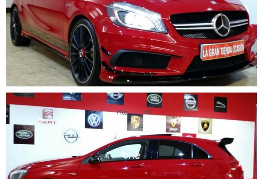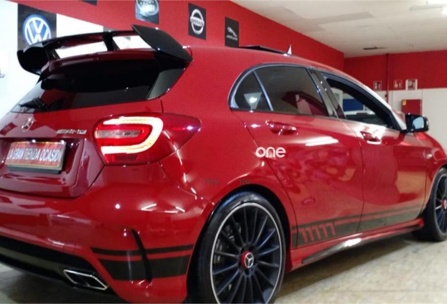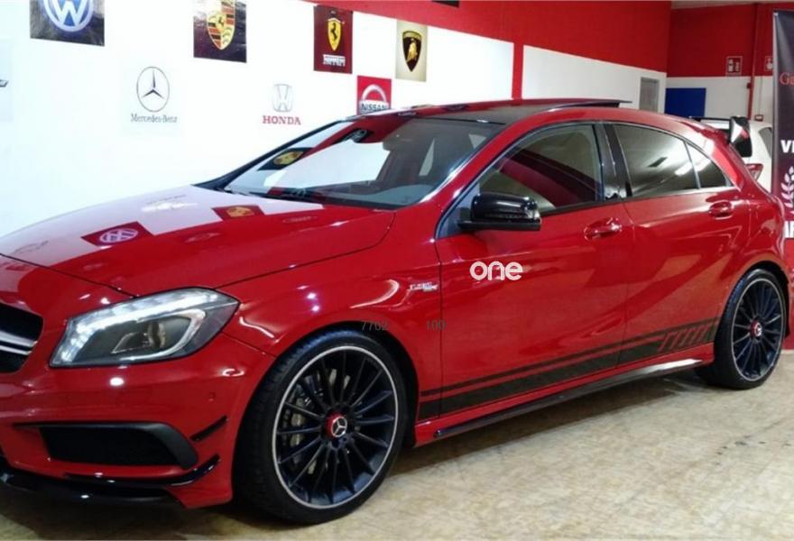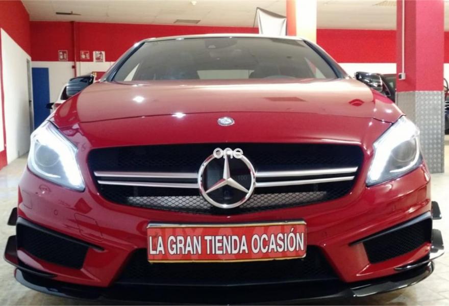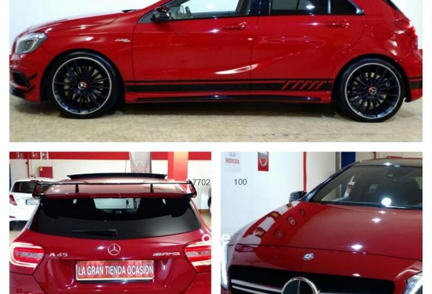 MERCEDES-BENZ Clase A, Gasolina, año 2014, 56900 kilómetros, color Rojo metalizado, precio 37900€. OCASIÓN,MERCEDES BENZ CLASE A 45 AMG PERFORMANCE 360CV. GASOLINA.CAMBIO AUTOMÁTICO CON LEVAS AL VOLANTE TIPO F1.FINALES DE 2013.ÚLTIMA REVISIÓN COMPLETA REALIZADA EL 6 DE JULIO DE 2018 CON 56.900 KILÓMETROS EN CASA OFICIAL.CON CERTIFICADO DE SINIESTRALIDAD Y KILOMETRAJE REAL.PARA CONTACTAR POR WHATSAPP AL607. 69. 77. 88.SE ACEPTA COCHE COMO PARTE DE PAGO.PAQUETE COMPLETO AMG PERFORMANCE.Sistema de escape,tren de rodaje,asientos deportivos eléctricos calefactables,kit aerodinámico,volante deportivo en cuero multifunción.Con climatizador bizona,velocidad crucero,ISOFIX,navegador con pantalla frontal a color,techo panorámico,llantas multirradio AMG, cristales calorífugos,sensor de lluvia y de luces,luz diurna LED, faros bixenón,cámara trasera a color y sensores delanteros con ayuda en pantalla,avisador de proximidad y de cambio de carril,Start/Stop,sonido Harman/Kardon,BLUETOOTH,sistema multimedia con AUX y USB.Posibilidad de garantía adicional con SERVICIO OFICIAL..