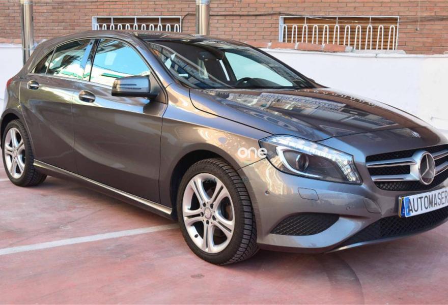 MERCEDES-BENZ Clase A, Diesel, año 2014, 118000 kilómetros, color Gris / Plata metalizado, precio 19400€. Calefacción eléctrica asientos delanteros,7G-DCT cambio automático de doble embrague,Cámara de marcha atrás con líneas de guía en la pantalla,Climatizador automático THERMOTRONIC,COMAND Online APS con disco duro de navegación, incluye Bluetooth y Linguatronic,Cuero Negro,Luces de carretera automáticas,Paquete de control de carril,Pintura metalizada designo Gris Montaña Magno,Tempomat con Speedtronic,Llantas aleación cinco radios dobles 17" (color gris tremolita), 225/45,Pintura metalizada,Detector de cambio de carril,Ayuda activa para aparcar (incl. Parktronic). Todas las revisiones pasadas en Concesionario oficial Mercedes