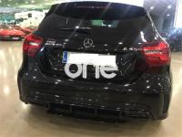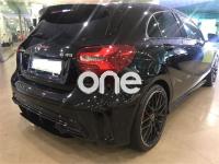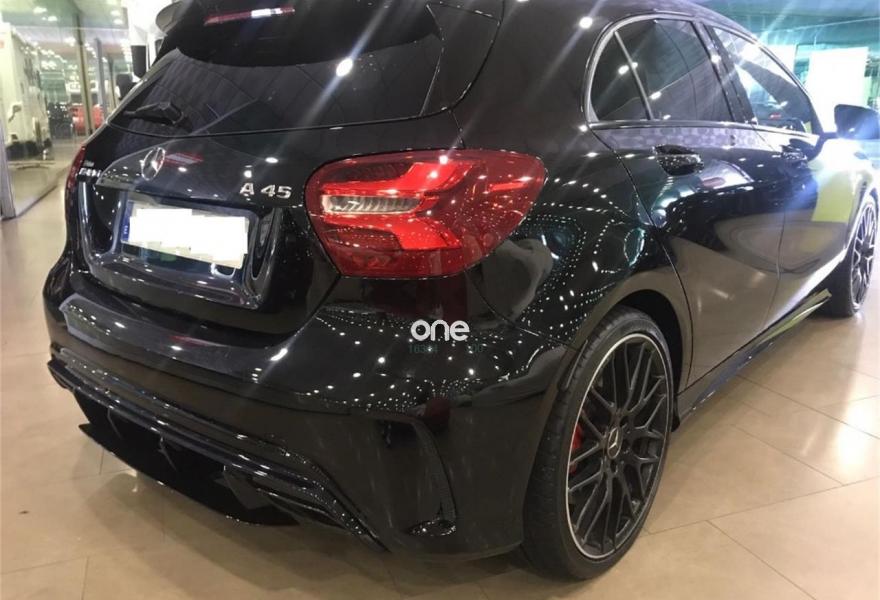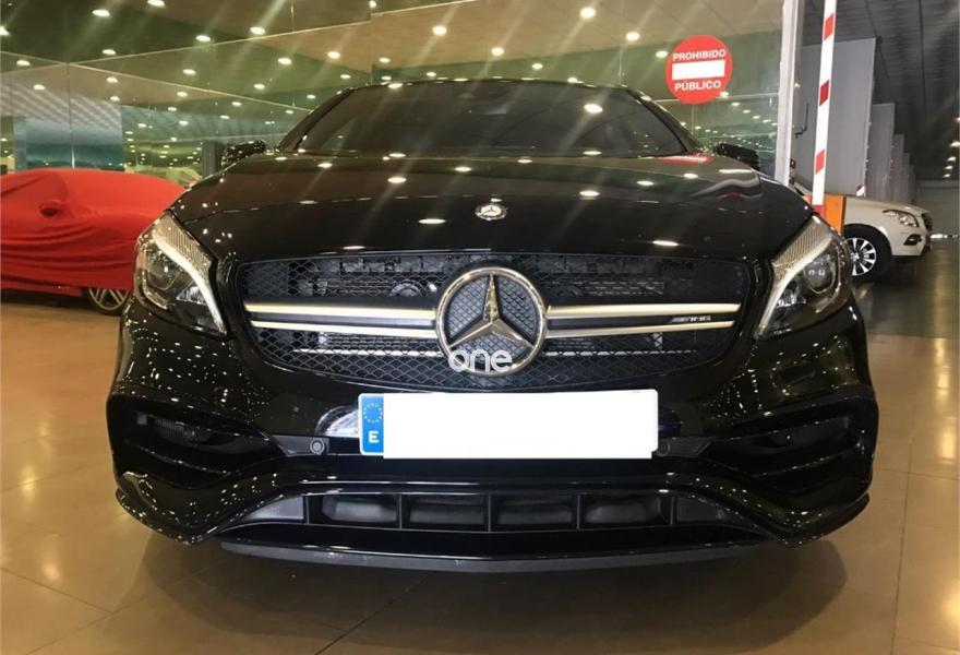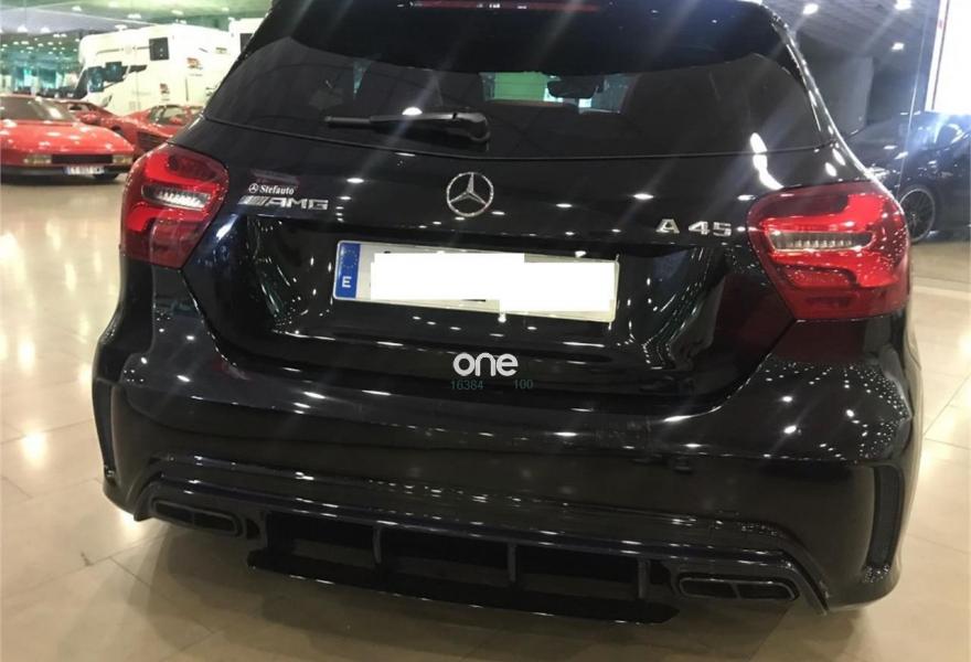 MERCEDES-BENZ Clase A, Gasolina, año 2017, 30000 kilómetros, color Negro metalizado, precio 44000€. Apoyabrazos abatible y desmontable con portavasos doble en plazas traseras,Apoyo lumbar de 4 vías para conductor y acompañante,Navegador Garmin® MAP PILOT,Insertos de cenicero con tapa incluida en los compartimentos portaobjetos delante y detrás, así como encendedor delante,COMAND Online,Audio 20 CD con preinstalación para Garmin MAP PILOT,Paquete Exclusivo AMG,Chaleco reflectante para el conductor,Paquete AMG Night,Paquete aerodinámico AMG,Luces de carretera automáticas,Interfaz universal en guantera para distintos equipos móviles de audio,Cuero Negro,Tren de rodaje con sistema de amortiguación ajustable,Sistema de sonido surround Harman/Kardon Logic 7 con 12 altavoces,Equipo de escape AMG Performance,Pintura metalizada,Perfil aerodinámico AMG trasero,Paquete AMG DYNAMIC PLUS,Volante AMG Performance,Volante AMG Performance en napa negro/microfibra DINAMICA,Airbags laterales en parte trasera,Cámara de marcha atrás con líneas de guía en la pantalla,Detector automático de silla infantil,Piloto automático de distancia DISTRONIC,Piloto automático para aparcar. mercedes clase a 45 amg con espapes y sistema de race .