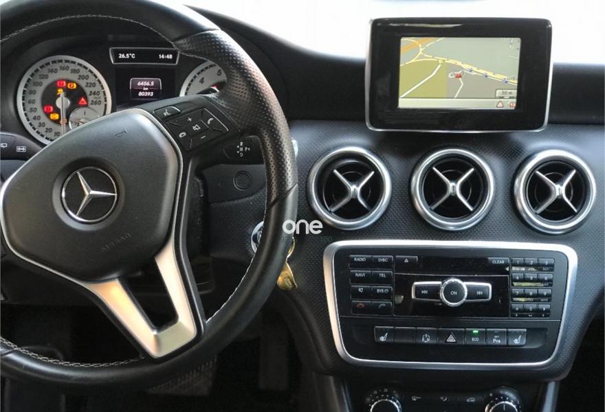 MERCEDES-BENZ Clase A, Gasolina, año 2015, 79000 kilómetros, color Gris / Plata metalizado, precio 21600€. Un solo dueño, muchos extras, navegador, sensor de aparcamiento delantero y trasero, climatizador, velocidad de crucero, sensor de luces y lluvia, etc.