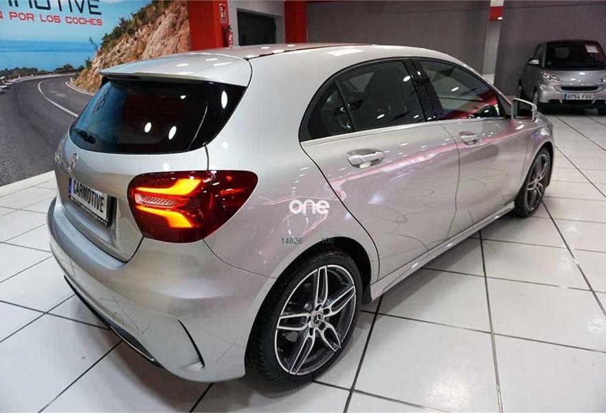 MERCEDES-BENZ Clase A, Diesel, año 2017, 9000 kilómetros, color Gris / Plata metalizado, precio 27600€. DYNAMIC SELECT,Paquete Navegador,Línea AMG Line,Navegador Garmin® MAP PILOT,Interfaz universal en guantera para distintos equipos móviles de audio,Símil de cuero ARTICO /microfibra DINAMICA Negro,Cristales calorífugos tintados oscuros en ventanillas y luneta traseras,Llantas de aleación AMG de 18" y 5 radios dobles, color gis titanio y pulidas a alto brillo, 225/40,Pintura metalizada,7G-DCT cambio automático de doble embrague,Cámara de marcha atrás con líneas de guía en la pantalla. Carmotive, mayorista del vehículo de ocasión.