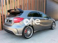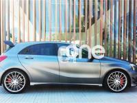 MERCEDES-BENZ Clase A, Gasolina, año 2015, 18800 kilómetros, color Gris / Plata , precio 54900€. Apoyabrazos abatible y desmontable con portavasos doble en plazas traseras,Calefacción eléctrica asientos delanteros,Apoyo lumbar de 4 vías para conductor y acompañante,Navegador Becker MAP PILOT,Radio Digital (DAB),Preequipo para teléfono móvil con interfaz en apoyabrazos,Módulo de teléfono con Bluetooth (perfil SAP),Audio 20 CD Radio con cargador para 6 CD,Pinzas de freno en color rojo,Paquete Retrovisores,Paquete Exclusivo,Paquete de alumbrado y visibilidad,Paquete AMG Night,Paquete AMG Driver,Paquete aerodinámico AMG,Luces de carretera automáticas,Lavaparabrisas calefactado con eyectores y tubos flexibles calefactados,Control de ángulo muerto,Alerón trasero AMG,Llantas de aleación AMG de 19" multirradio, color tris titanio y pulidas a alto brillo, 235/35,Equipo de escape AMG Performance,Tren de rodaje AMG Performance,Detector de cambio de carril. Mercedes A45 AMG EDITION 1 - 360CV