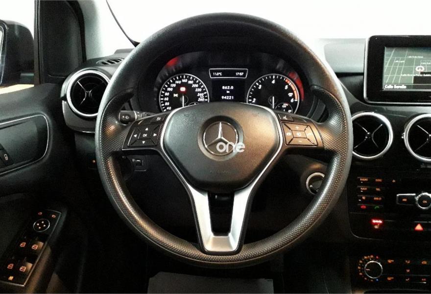 MERCEDES-BENZ Clase B, Diesel, año 2014, 94000 kilómetros, color Negro , precio 14490€. Mercedes Benz clase B180 CDI 109 cv 09/2014 con 94.000 km por 14.490 € (precio sujeto a financiación mínima de 8.000 €). Vehículo en un estado inmejorable y con un equipamiento de auténtico lujo: ABS, ESP, TCS, BAS, airbags, sistema de advertencia de colisión, sistema de alerta por cansancio, fijaciones isofix y top tether, luces diurnas, sensor de luces, freno de estacionamiento eléctrico, sensores de aparcamiento delanteros y traseros, aire acondicionado, elevalunas eléctricos, navegador 3D, equipo de audio con radio, CD, USB, MP3, conexión Aux-In, bluetooth, volante multifunción regulable en altura y profundidad, asientos calefactables, retrovisores con regulación eléctrica y calefactados, asientos abatibles, llantas de 18 pulgadas … revisiones en concesionario oficial Mercedes Benz. Certificamos los kilómetros por escrito con garantía de devolución del dinero.