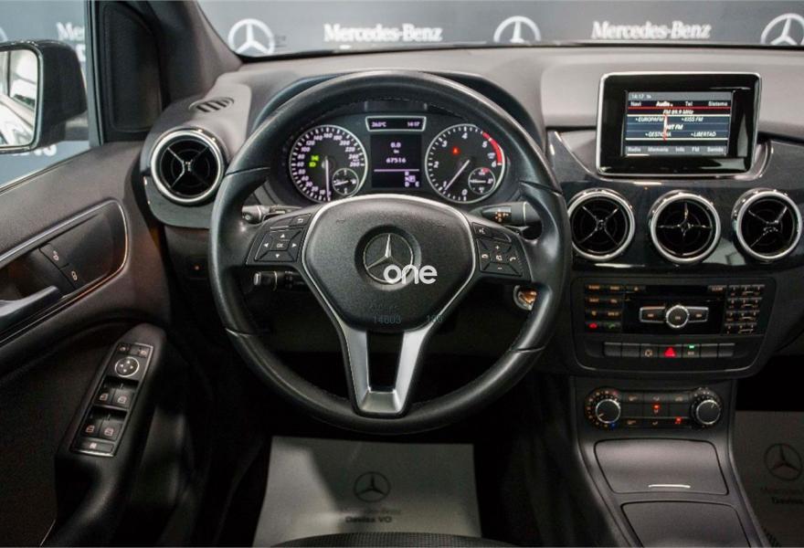 MERCEDES-BENZ Clase B, Diesel, año 2015, 67000 kilómetros, color Negro (** GARANTÍA OFICIAL MERCEDES 1 AÑO **) metalizado, precio 17900€. Módulo para teléfono con Bluetooth (perfil SAP),Navegador Becker MAP PILOT,Cámara de marcha atrás con líneas de guía en pantalla,Preequipo para navegador Becker MAP PILOT,Techo corredizo panorámico eléctrico de cristal,Tela Domburg Gris Cristal,Llantas de aleación de 16" y 5 radios dobles en negro mate y pulidas alto brillo, 205/55,Negro Cosmos (metalizado),Paquete retrovisores,Pintura metalizada,7G-DCT Cambio automático de doble embrague. SERVICIO OFICIAL MERCEDES BENZ - DAVISA