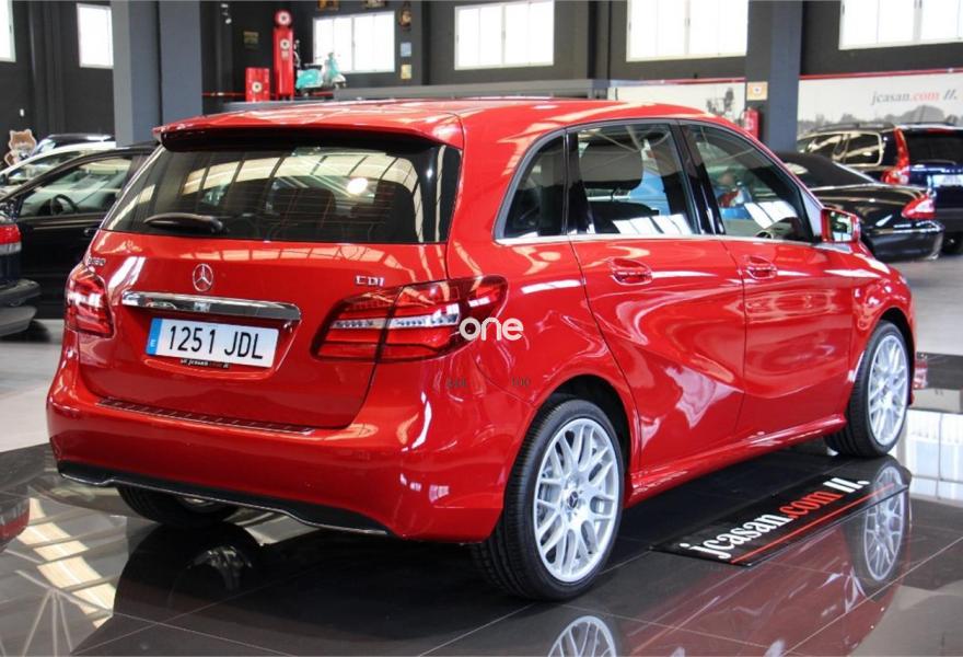 MERCEDES-BENZ Clase B, Diesel, año 2015, 72000 kilómetros, color Rojo , precio 17990€. Estado de exposición impecable , reacondicionamiento interior y exterior excelente , informe de calidad con certificación de kilometraje real y ausencia de siniestro estructural , admitimos su vehículo a cambio , vehículo matriculado el 26/03/2015 , iva deducible y cambio de titularidad incluido en el precio , venta exportación o profesional del sector 17.990 euros , venta particular incremento de 980 euros en concepto de garantía 12 meses PREMIUM con cobertura europea ,sistema Start/Stop de reducido consumo , consumo extra urbano de 3,6 l a los 100 km , faros adaptativos Bi-Xenon con tecnología FULL-LED, llantas aluminio 18 pulgadas, juego de neumáticos nuevos a estrenar, sist de seguridad con aviso de proximidad a menos de 30 kms/hora , equipo de alto rendimiento con entrada auxiliar USB/ BLUETOOTH Hi-Fi ,espejos exteriores eléctricos y retráctiles ,asistente de ayuda arranque en pendiente, dirección adaptativa, incrustaciones de aluminio, alarma, equipo de telefonía BLUETOOTH .