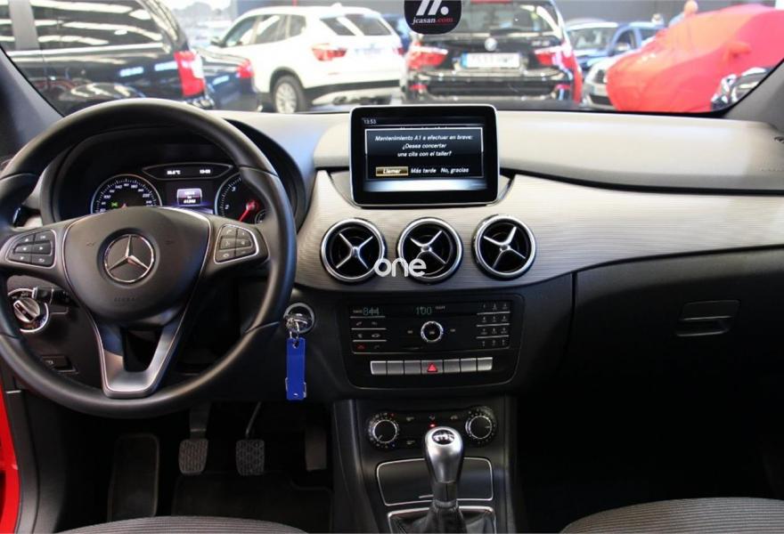 MERCEDES-BENZ Clase B, Diesel, año 2015, 61000 kilómetros, color Rojo , precio 16800€. Estado de exposición impecable , reacondicionamiento interior y exterior excelente , informe de calidad con certificación de kilometraje real y ausencia de siniestro estructural , admitimos su vehículo a cambio , vehículo matriculado el 04/2015 , iva deducible y cambio de titularidad incluido en el precio , venta exportación o profesional del sector 16.800 euros , venta particular incremento de 980 euros en concepto de garantía 12 meses PREMIUM con cobertura europea ,sistema Start/Stop de reducido consumo , consumo extra urbano de 3,6 l a los 100 km , solo 61.000 kms, faros adaptativos Bi-Xenon con tecnología FULL-LED, sist de seguridad con aviso de proximidad a menos de 30 kms/hora , equipo de alto rendimiento con entrada auxiliar USB/ BLUETOOTH Hi-Fi ,espejos exteriores eléctricos y retráctiles ,asistente de ayuda arranque en pendiente, dirección adaptativa, incrustaciones de aluminio, alarma, equipo de telefonía BLUETOOTH con sistema de com por voz, llantas de aluminio.