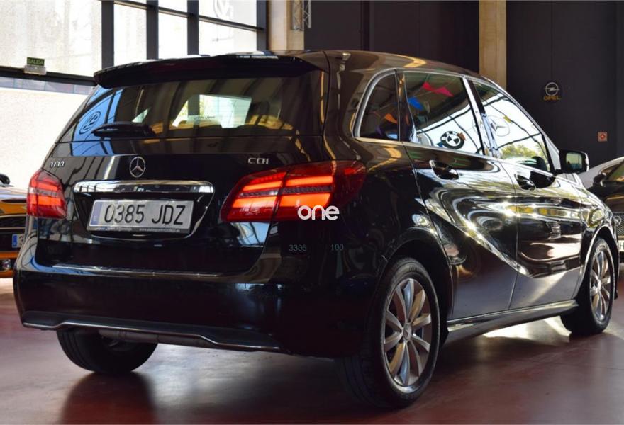 MERCEDES-BENZ Clase B, Diesel, año 2015, 92300 kilómetros, color Negro (Noche) metalizado, precio 15900€. Apoyabrazos abatible y desmontable con portavasos doble en plazas traseras,Tela Vianen Negro,Llantas de aleación de 16" y 5 radios dobles en negro mate y pulidas alto brillo, 205/55,Negro Noche,Pintura metalizada,Desconexión automática del airbag del acompañante. *Llévatelo por 14.900€, financiando un mínimo de 10.000€ a partir de 72 Meses. Vehículo Nacional de un único propietario. Última revisión en Taller Autorizado el 10/02/2017 a los 75.387Kms. En el precio se incluye: IVA (Deducible), Transferencia y Garantía de un año // Abierto 365 días - Financiación sin entrada 201€/Mes - Web: autosportmor//