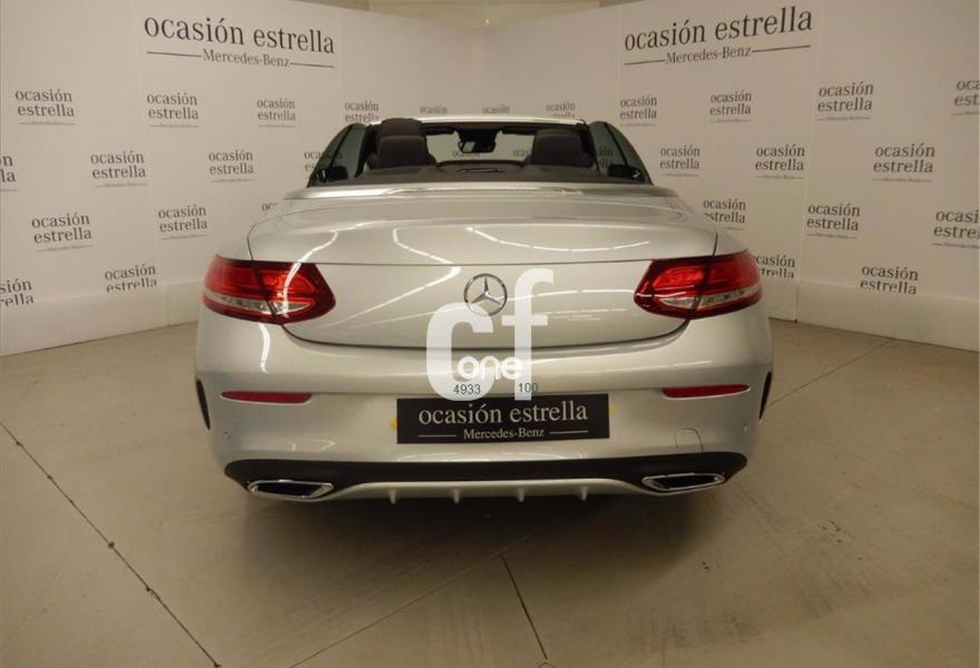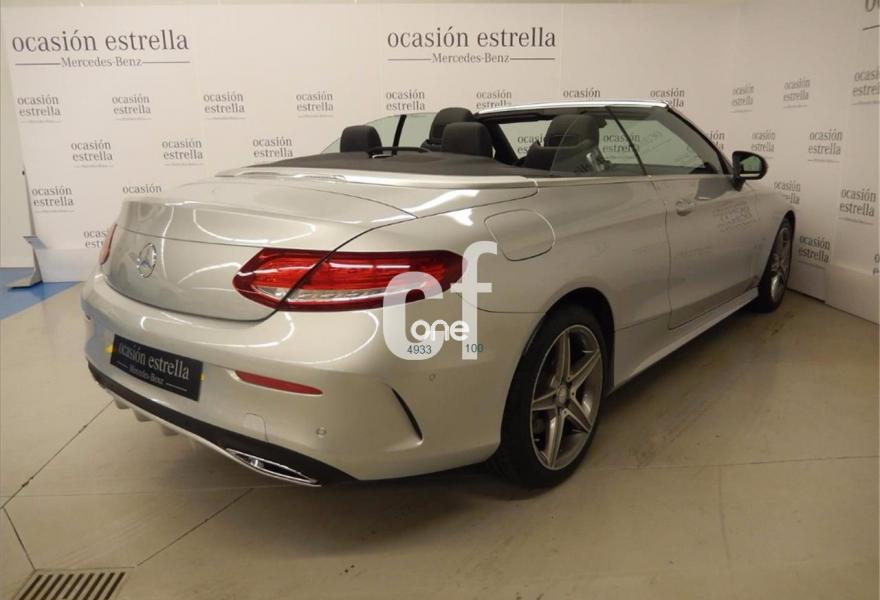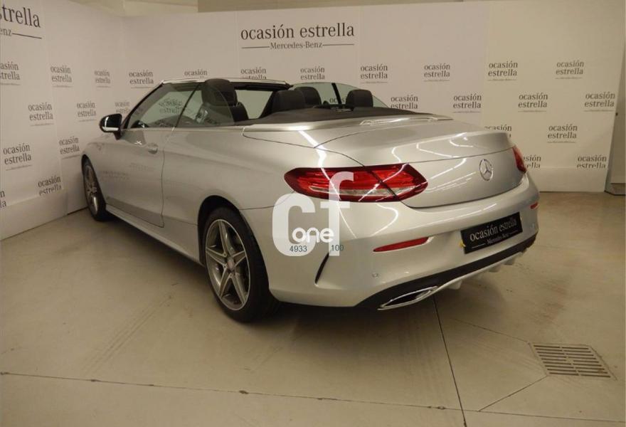 MERCEDES-BENZ Clase C, Diesel, año 2016, 10190 kilómetros, color Gris / Plata metalizado, precio 44600€. Cuero negro,Plata iridio (metalizado),Ayuda activa para aparcar. Incluye PARKTRONIC,Reloj analógico,Paquete de retrovisores,AMG Line,AIRCAP,Navegador Garmin® MAP PILOT,Cambio automático 9G-TRONIC con palanca DIRECT SELECT en la columna de dirección y levas de cambio,Calefacción eléct.asientos delanteros,AIRSCARF,Faros LED Intelligent Light System,Tren de rodaje deportivo con dirección directa deportiva,Selector DINAMIC SELECT,Llantas de aleación AMG de 45,7 cm (18") de 5 radios color gris titanio pulidas a alto brillo, 225/45, 245/40,Iluminación de ambiente en 3 tonalidades (solar, polar y neutro),KEYLESS-GO,Molduras AMG de fibra de vidrio/aluminio claro con rectificado longitudinal,Paquete de confort para Cabrio,Paquete de confort para los asientos delanteros. Vehículo de gerencia completamente equipado, en perfecto estado y revisado por nuestro concesionario MERCEDES-BENZ.