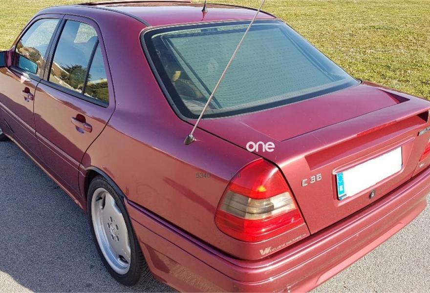 MERCEDES-BENZ Clase C, Gasolina, año 1995, 94800 kilómetros, color Granate metalizado, precio 8900€. C36 amg 280cv, Kit alemán (con frontal del clase e, y alerón integrado en el portón). vehículo en perfectas condiciones, pack especial amg sport, asientos de piel beig, techo solar, radio cd mp3 sony de 52w, llantas 17 245, cortina trasera electrica, cambio automatico, 2 airbags, control y limitador de velocidad, climatizador, directo de particular. recién hecha la revision de aceite 5w40 y filtros de aire y aceite, BOBINAS Y LAS 6 BUJIAS..