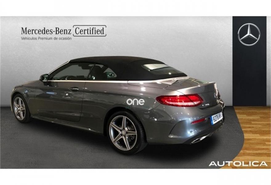 MERCEDES-BENZ Clase C, Gasolina, año 2017, 10000 kilómetros, color Gris / Plata metalizado, precio 51500€. Paquete de aparcamiento,Paquete de confort para Cabrio,Calefacción eléct.asientos delanteros,Kit de cables para interfaz universal para distintos equipos de audio,AMG Line,Capota insonorizante con mayor confort climático y acústico,Faros LED Intelligent Light System,Iluminación de ambiente en 3 tonalidades (solar, polar y neutro),Navegador Garmin® MAP PILOT,Paquete de retrovisores,Preinstalación para navegador Garmin® MAP PILOT,Gris selenita (metalizado),Pintura metalizada,Ayuda activa para aparcar. Incluye PARKTRONIC,Cámara de marcha atrás,Paquete de confort para los asientos delanteros. Mercedes-Benz Certified. Vehículos seminuevos de Mercedes Benz con kilometraje certificado, con menos de 150.000 kms y hasta 6 años de antigüedad, revisados cuidadosamente para que puedas disfrutar de tu vehículo como si lo fueras a estrenar.