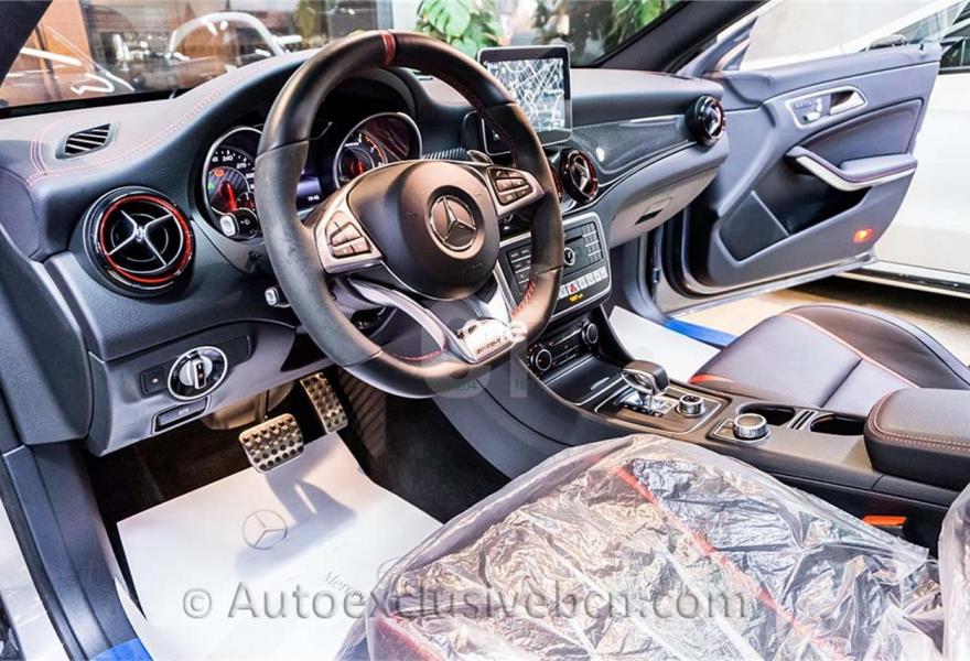 MERCEDES-BENZ Clase CLA, Gasolina, año 2017, 13047 kilómetros, color Gris / Plata (Gris Montaña) metalizado, precio 63500€. Molduras de fibra de carbono AMG,Paquete Exclusivo AMG,COMAND Online,Asiento acompañante con ajuste eléctrico y función de memoria,Asientos AMG Performance,Cuero perforado RED CUT Negro,Equipo de escape AMG Performance,Iluminación de ambiente con doce tonalidades,Luces de carretera automáticas,Paquete aerodinámico AMG,Paquete de alumbrado y visibilidad,Paquete de confort KEYLESS-GO,Paquete de integración smartphone,Techo corredizo panorámico eléctrico de cristal,Volante AMG Performance en napa negro/microfibra DINAMICA,Asiento del conductor de ajuste eléctrico con función de memoria,Cristales calorífugos tintados oscuros en ventanillas y luneta traseras,Gris Montaña (metalizado),Llantas de aleación AMG de 19" y en diseño de radios cruzados, color negro mate con pestaña de llanta pulida a alto brillo, 235/35,Paquete AMG Night,Paquete Retrovisores,Ayuda activa para aparcar (incl. Parktronic),Cámara de marcha atrás con líneas de guía en la pantalla,Detector automático de silla infantil. GARANTIA OFICIAL MERCEDES-BENZ | Año: 13.10.2016 -- Libro Revisiones Mercedes | DESCUENTOS FAMILIA NUMEROSA - MINUSVALIAS | PRECIO FINAL CON TODOS LOS IMPUESTOS INCLUIDO | Base Neta: 48.912 € + Impuestos = 63.500 € | IVA DEDUCIBLE EMPRESAS | Extras : 801 Piel Negra ** P39 Paquete Exclusivo AMG ** 275 Asientos delanteros Eléctricos + 3 memorias ** 531 Navegador Command On Line ** 281 Volante AMG PERFORMANCE ** 555 Asientos AMG PERFORMANCE ** U21 Escape Deportivo PERFORMANCE ** B26 Paquete Aerodinámico PERFORMANCE ** H73 Molduras Carbono AMG ** 873 Calefacción Asientos delanteros ** 632 Faros LED ** 235 PARKTRONIC ** 218 Cámara trasera ** 875 Limpia Parabrisas Calefactado ** 840 Cristales Traseros Tintados ** 413 Techo Panorámico Cristal ** 889 KeyLessGO ** 608 Luces Carretera Automáticas ** NUEVO MODELO ** otros... | FINANCIACION DESDE SIN ENTRADA HASTA 120 MESES | CALCULO DE EJEMPLO CON 50% ENTRADA Y RESTO A 120 MESES | MÁS UNIDADES DE CLASE CLA EN TIENDA //.