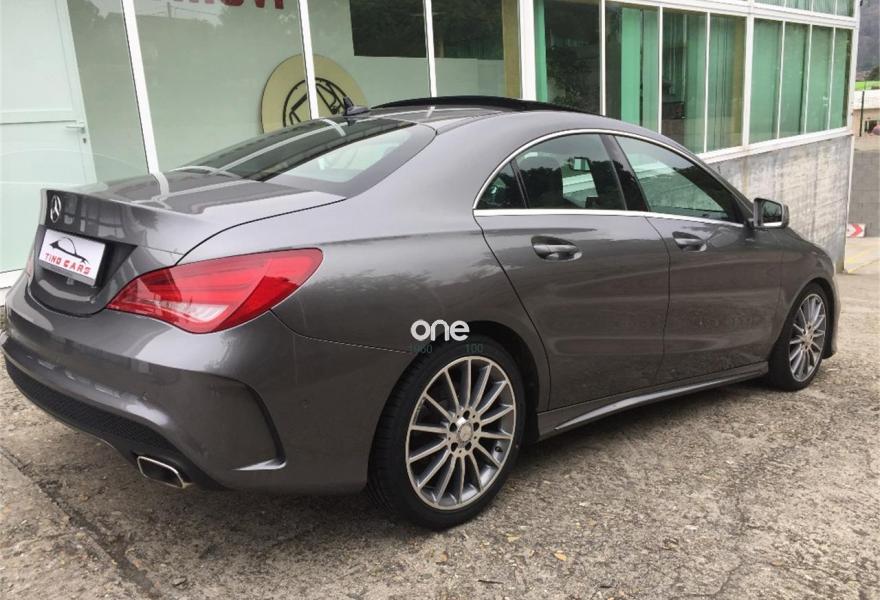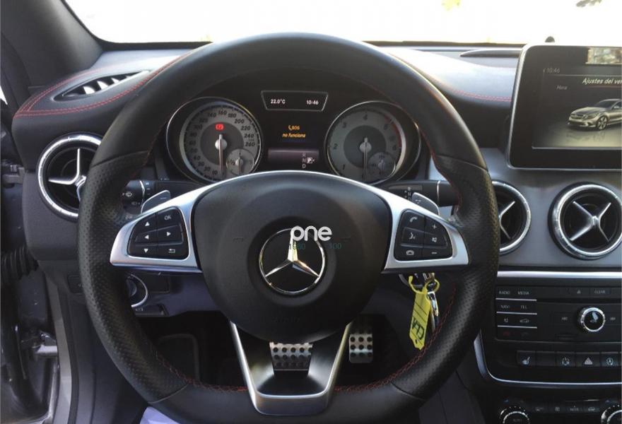 MERCEDES-BENZ Clase CLA, Diesel, año 2015, 79789 kilómetros, color Gris / Plata (Gris Montaña) metalizado, precio 30990€. Display TFT de alta resolución de 20,3 cm (8"),Calefacción eléctrica asientos delanteros,Módulo de teléfono con Bluetooth (perfil SAP),Navegador Garmin® MAP PILOT,Audio 20 CD con preinstalación para Garmin® MAP PILOT,Climatizador automático THERMOTRONIC,Apoyo lumbar de 4 vías para conductor y acompañante,Apoyabrazos abatible y desmontable con portavasos doble en plazas traseras,Cuero Negro,DISTRONIC PLUS,Kit portaobjetos,Paquete Exclusivo AMG,Paquete Exclusivo,Techo corredizo panorámico eléctrico de cristal,Cristales calorífugos tintados oscuros en ventanillas y luneta traseras,Gris Montaña (metalizado),Llantas de aleación AMG de 18" en diseño multirradio en colro gris titanio y pulidas en alto brillo, 225/40,Paquete Retrovisores,Pintura metalizada,Ayuda activa para aparcar (incl. Parktronic),Airbags laterales en parte trasera,Intelligent Light System. *** MERCEDES CLA 220 CDI AMG ***