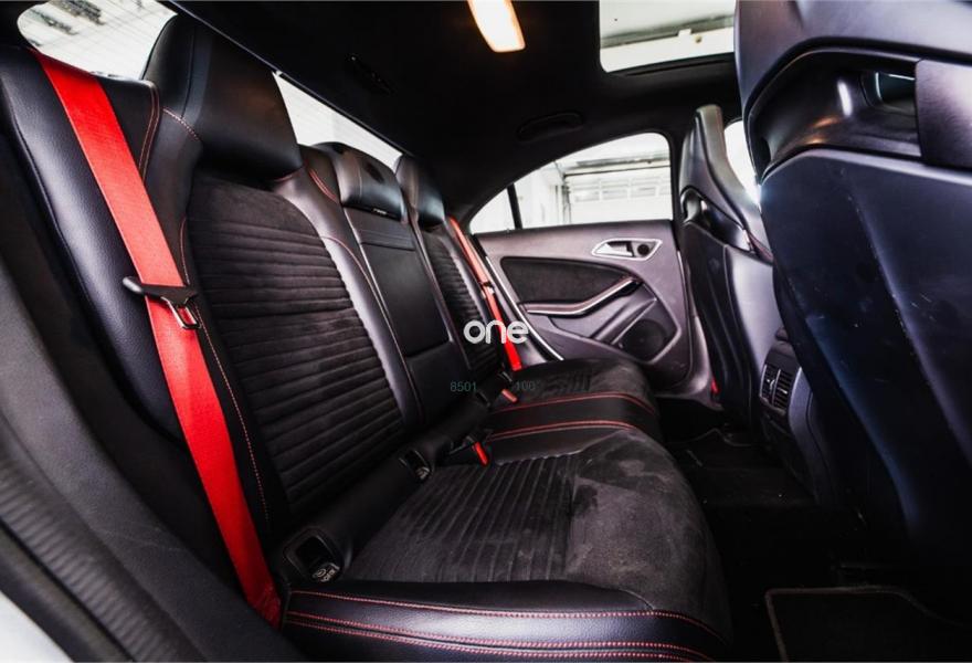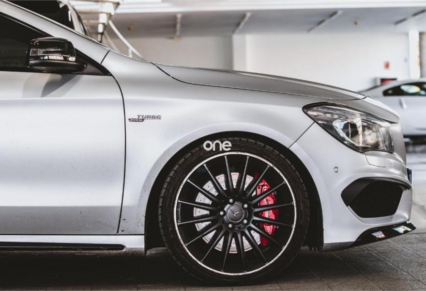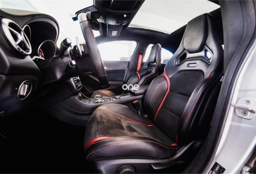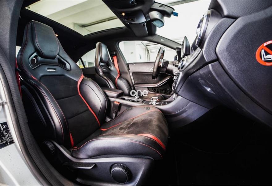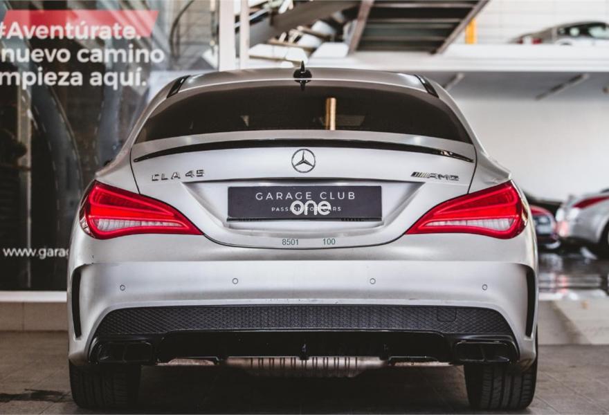 MERCEDES-BENZ Clase CLA, Gasolina, año 2014, 89000 kilómetros, color Gris / Plata (Mate) , precio 40999€. Display TFT de alta resolución de 20,3 cm (8"),Apoyabrazos abatible y desmontable con portavasos doble en plazas traseras,Calefacción eléctrica asientos delanteros,Molduras de carbono,Cargador de DVDs,Módulo de teléfono con Bluetooth (perfil SAP),Asientos AMG Performance,Equipo de escape AMG Performance,Climatizador automático THERMOTRONIC,Paquete AMG Driver,Paquete Exclusivo AMG,Volante AMG Performance en napa negro/Alcantara,Paquete Retrovisores,Tren de rodaje AMG Performance,Detector de cambio de carril,Cámara de marcha atrás con líneas de guía en la pantalla,Ayuda activa para aparcar (incl. Parktronic). MERCEDES BENZ CLA 45 AMG 4M Aut.