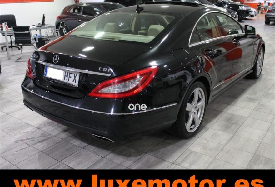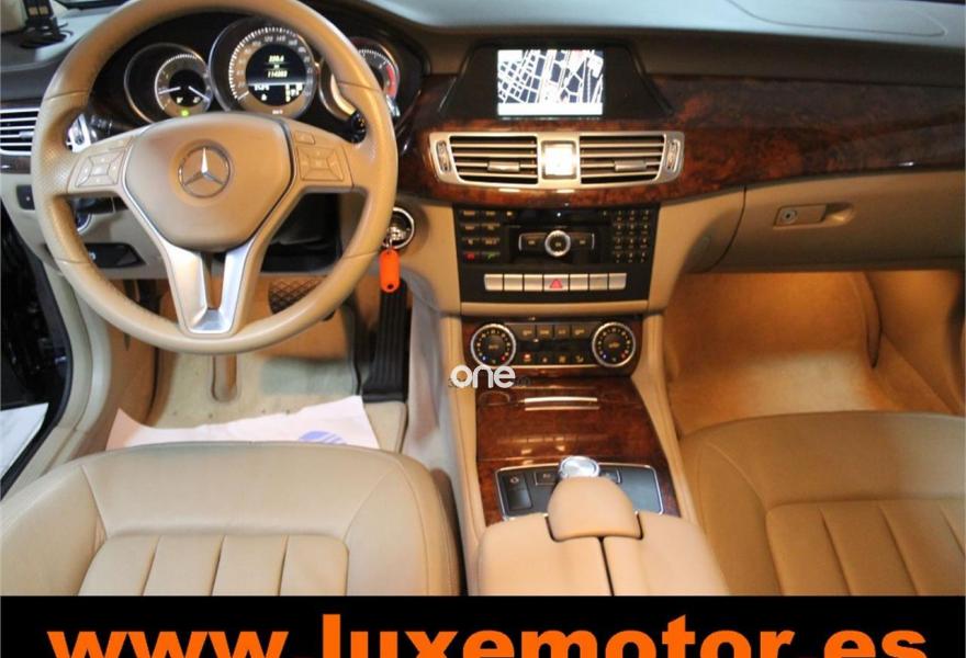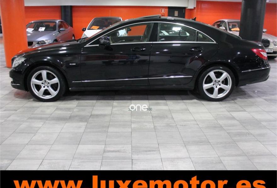 MERCEDES-BENZ Clase CLS, Diesel, año 2011, 114353 kilómetros, color Negro metalizado, precio 24990€. Luces diurnas LEDs,Alfombrillas de velours,Asiento posterior partido (1/3 : 2/3),Asientos multicontorno delanteros y reposacabezas de confort,Cuero designo unicolor,Audio 50 APS con sistema de navegación de mapa 2D,Módulo Bluetooth para móviles con perfil SAP V3,Radio Digital (DAB),COMAND APS con disco duro de navegación,Cuero Beige Almendra,Faros bixenón inteligentes LEDs,Iluminación ambiental interior,Molduras de álamo marrón claro,Paquete Exclusivo,Sist.de control de presión de neumáticos,Techo corredizo y elavable eléctrico de cristal con función PRE-SAFE,Depósito de combustible de mayor capacidad (80 l),Negro Obsidiana (metalizado),Pintura metalizada (excepto Blanco Diamante),Tren de rodaje de confort,Llantas de aleación de 5 radios y 19", 255/35, 285/30,Paquete deportivo exterior. LUXEMOTOR