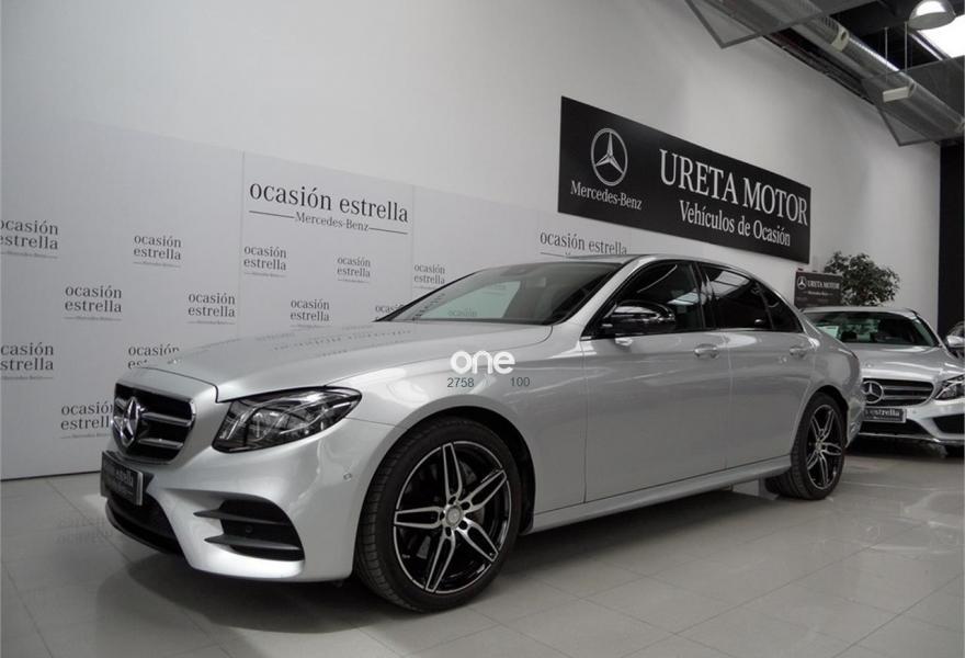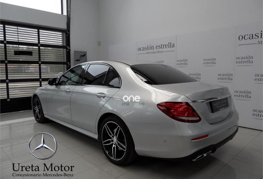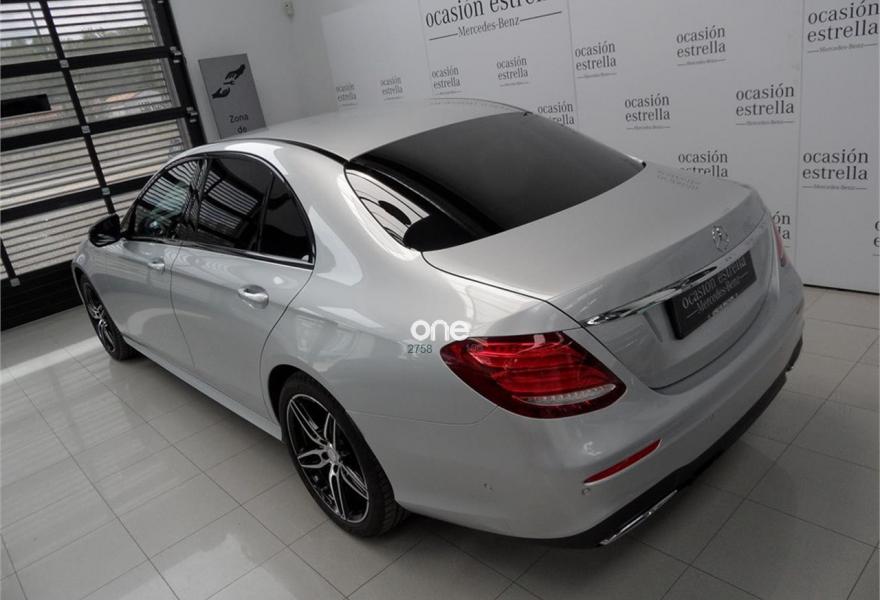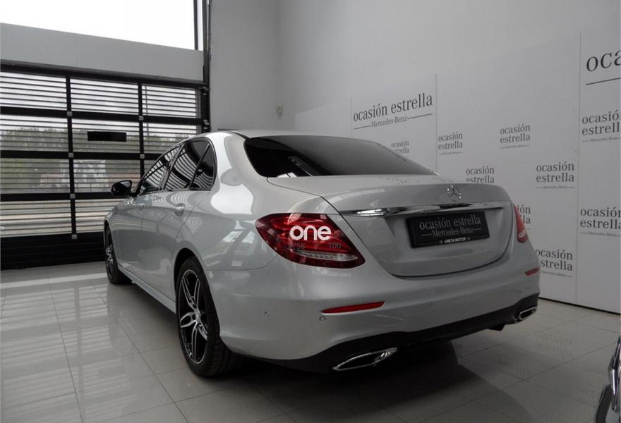 MERCEDES-BENZ Clase E, Diesel, año 2017, 23000 kilómetros, color Gris / Plata (Iridio) metalizado, precio 43500€. AVANTGARDE Interior,Símil cuero ÁRTICO,COMAND Online,MULTIBEAM LED,AMG Line Exterior,Cristales calorífugos tintados oscuros en ventanillas traseras y luneta trasera,Llantas de aleación AMG de 48,3 cm (19") y 5 radios dobles color negro de alto brillo y pulidas a alto brillo, 245/40, 275/35,Paquete Night,Paquete Premium Comand,Plata Iridio (metalizado),Paquete de aparcamiento con cámara de 360º,Luces de carretera automáticas,Paquete de asistencia a la conducción. Junio 2017. Vehiculo nacional impecable. Dos años de garantia oficial Mercedes-Benz Certified. Iva incluido y deducible. Precio de 43500€ sujeto a financiacion parcial.