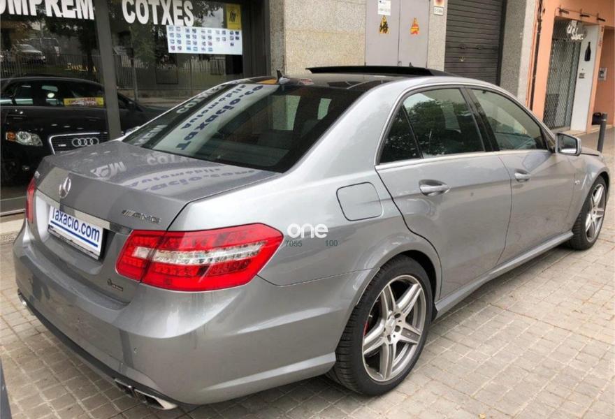 MERCEDES-BENZ Clase E, Gasolina, año 2010, 212000 kilómetros, color Gris / Plata metalizado, precio 27900€. Alfombrillas de velours en color equipamiento con distint. AMG,Cuero,Molduras de carbono AMG,Molduras de madera en fresno marrón,COMAND APS con disco duro de navegación, incluye Linguatronic,Cuero designo unicolor (AMG),Lavafaros,Paquete de memorias asientos delanteros,Sistema de control de presión de inflado de neumáticos (RDK),Techo corredizo elevador eléctrico de cristal con PRE-SAFE,Llantas de aleación AMG de 19", 255/35, 285/30,Pintura metalizada,Parktronic. * Mercedes E 63 AMG - Nacional - 1 Propietario - Full Equip *