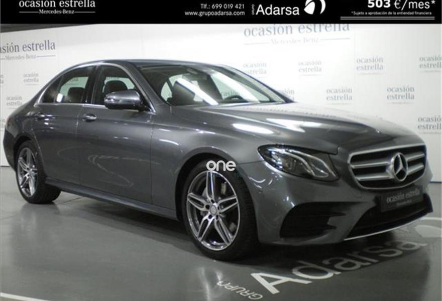 MERCEDES-BENZ Clase E, Diesel, año 2017, 18549 kilómetros, color Gris / Plata (GRIS SELENITA) metalizado, precio 41900€. Referencia:A01/8003-Automático-AMG Exterior-Avantgarde Interior-Cámara de marcha atrás-Carplay-Asientos traseros abatibles-Piloto para estacionamiento-Navegador Comand Online-Calefacción asientos delanteros-Paquete alumbrado interior-Iluminación ambiente-Dynamic Select.