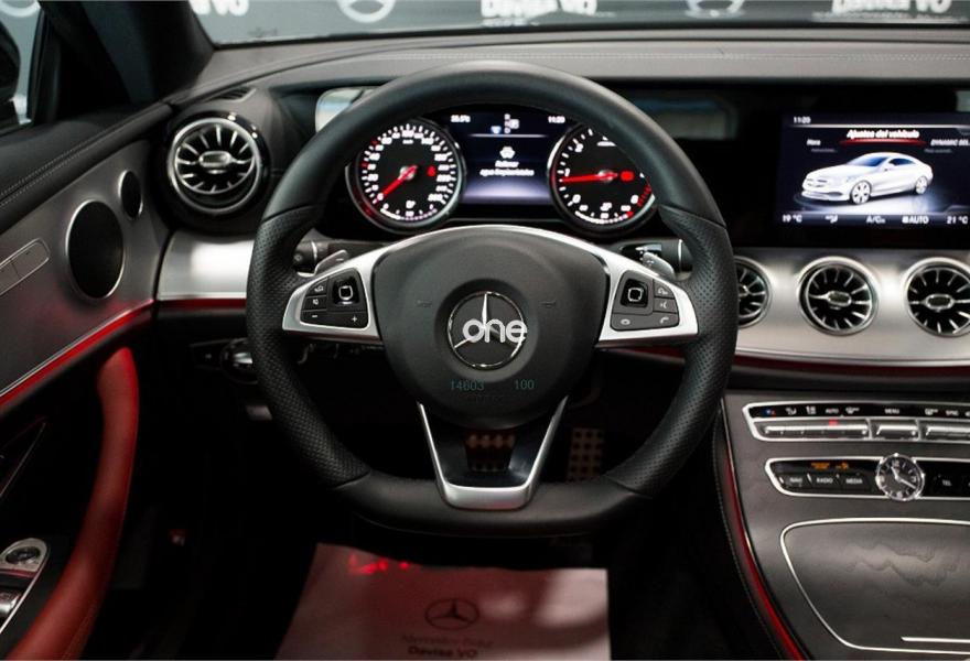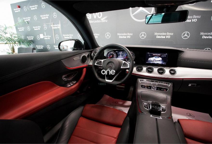MERCEDES-BENZ Clase E, Diesel, año 2017, 15000 kilómetros, color Negro (** GARANTÍA OFICIAL MERCEDES 1 AÑO **) metalizado, precio 55000€. Paquete KEYLESS-GO,Cuero,Climatización automática THERMOTRONIC,Cuero napa rojo/negro,Cuero rojo/negro,KEYLESS-GO,Panel táctil con controlador central,Paquete de asistencia a la conducción,Paquete de memorias asientos delanteros,Telefonía multifunción,Techo corredizo panorámico eléctrico,Llantas de aleación AMG de 48,3 cm (19") y 5 radios dobles color negro de alto brillo y pulidas a alto brillo, 245/40, 275/35,Negro Obsidiana (metalizado),Pintura metalizada,Paquete de aparcamiento,AMG Line exterior. SERVICIO OFICIAL MERCEDES BENZ - DAVISA
