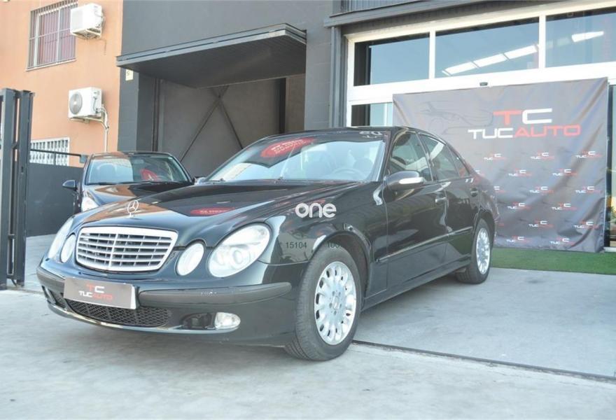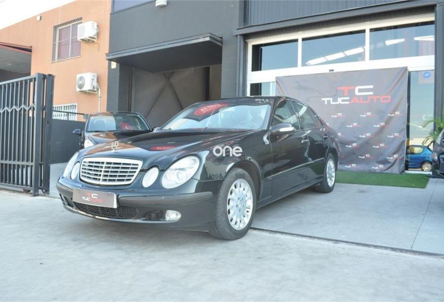 MERCEDES-BENZ Clase E, Diesel, año 2003, 269500 kilómetros, color Negro (NEGRO) metalizado, precio 3990€. Cambio automático E 220 CDI,Preinstalación para Nokia móvil,Cargador CD en consola central,Alarma antirrobo con prot.antirremolque,Climatiz.Thermotronic c/4 select.digit.,Tela París Antracita,Ll.aleación (4) 5 radios dobles 8.5Jx17,Negro Obsidiana metalizado,Anclajes para asiento Isofix,Sidebags y pretensores traseros. TC TUCAUTO: Vehículo sin GARANTÍA, Vehículo sin Garantía para uso Profesional o Empresarial (Realizando Actividades Económicas Comerciales, Transportistas, Fontaneros, Albañiles, etc), si es Particular Pregúntanos por las Condiciones de Venta-Nacional.