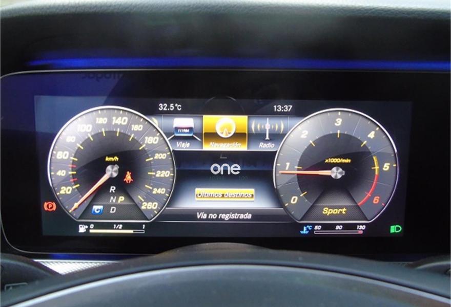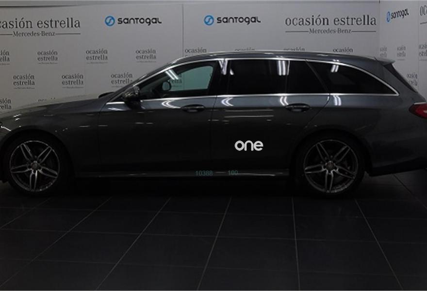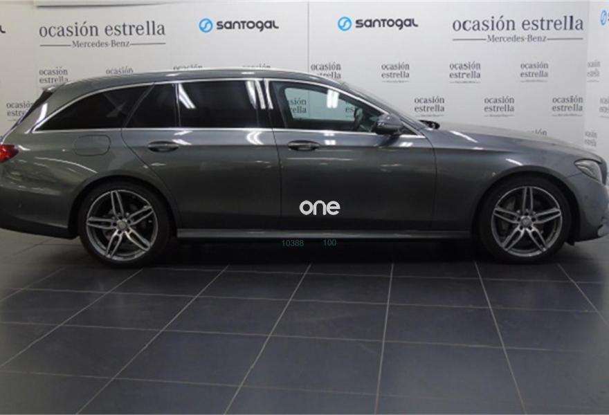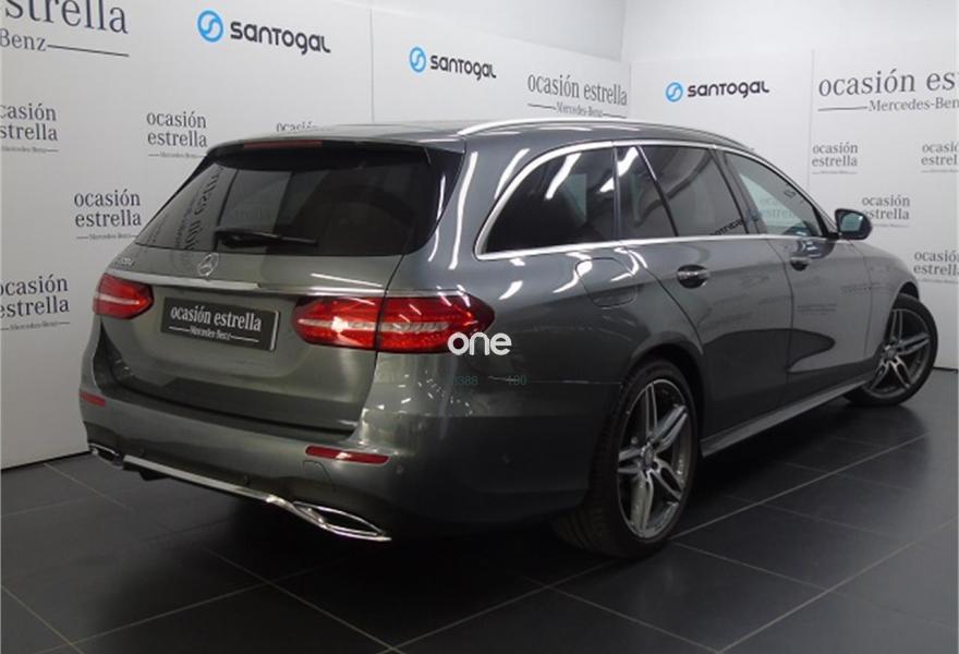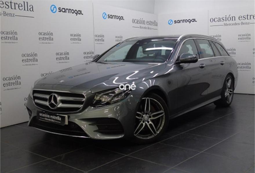 MERCEDES-BENZ Clase E, Diesel, año 2017, 18463 kilómetros, color Gris / Plata (GRIS SELENITA) metalizado, precio 44900€. Cambio automático 9G-TRONIC,COMAND Online,Cuero negro,MULTIBEAM LED,KEYLESS-GO,Techo corredizo panorámico eléctrico,AMG Line Exterior,Pintura metalizada,Neumáticos con propiedades de marcha de emergencia,Enganche para remolque incluyendo ESP® con sistema de estabilización de remolque,Cámara de marcha atrás,Control de ángulo muerto,Cristales calorífugos tintados oscuros en ventanillas traseras y luneta trasera,Llantas de aleación de 45,7 cm (18") y 5 radios dobles color gris tremolita y pulidas a alto brillo, 245/45, 275/40,Display del puesto de conducción en color con pantalla de 12,3". 24 meses de garantía y posibilidad de ampliación a 48 meses.