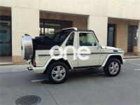 MERCEDES-BENZ Clase G, Gasolina, año 2009, 97000 kilómetros, color Blanco , precio 109900€. Cuero Negro,COMMAND APS con disco duro de navegación, cargador de 6 DVDs en salpicadero, Linguatronic, con pantalla 6,5" y compatible con tarjeta de memoria SD. Reproduce DVD vídeo.,Preinstalación para "móvil",Recubr.de acero para rueda repuesto,Recubrimiento para capota en color negro,Enganche remolque cabeza esfér.baja,Extintor de incendios. Mercedes G500 Cabrio, Nacional, Un Solo Propietario, Matriculado en Diciembre de 2008 (Modelo 2009 con el nuevo motor de 388cv).