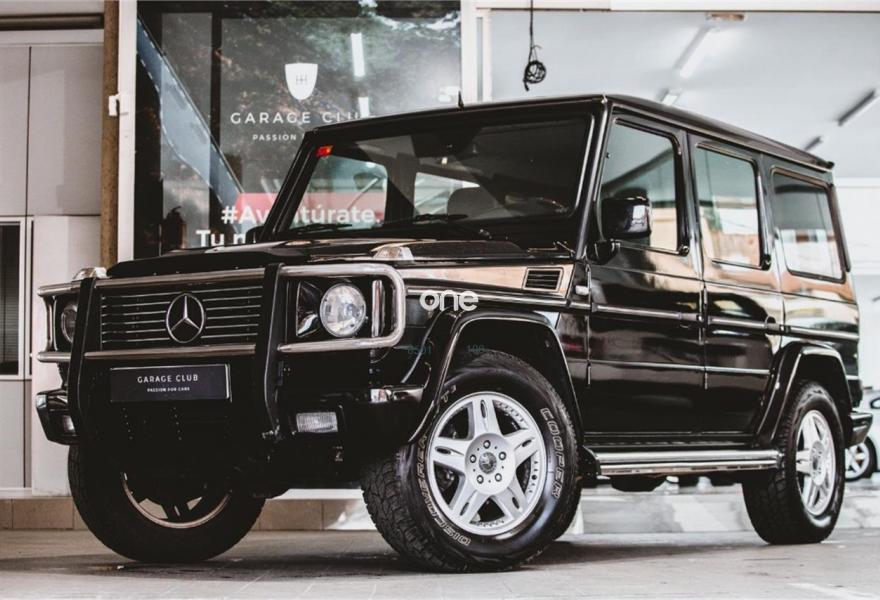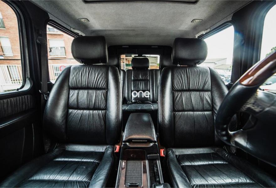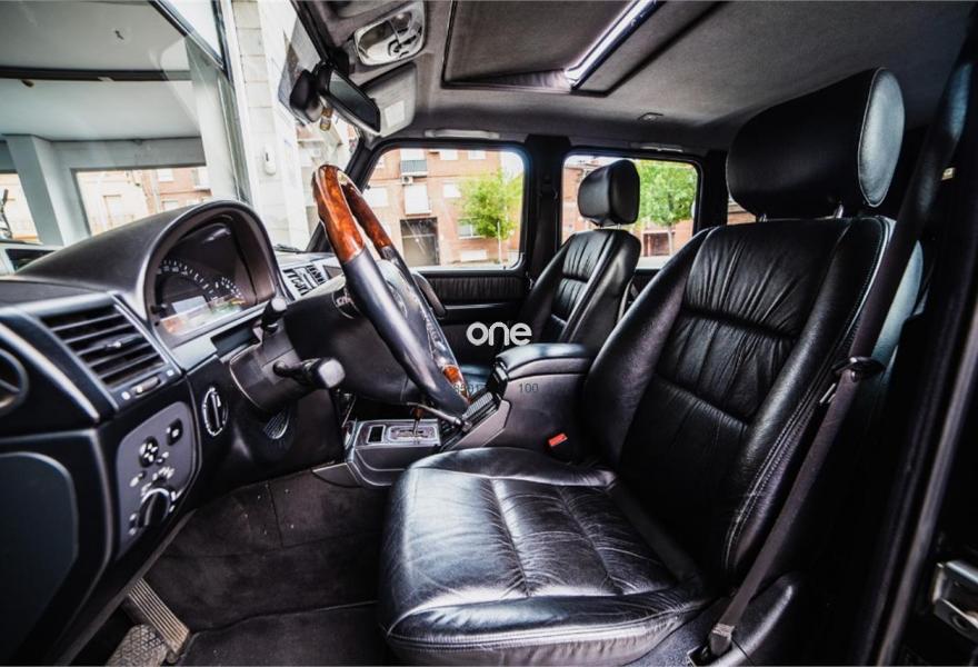 MERCEDES-BENZ Clase G, Diesel, año 2003, 219000 kilómetros, color Negro metalizado, precio 29999€. Calefacción para banco trasero,Cuero-designo unicolor,Cuero Negro,Recubr.de acero para rueda repuesto,Techo corredizo elevador eléctrico,Crist.tintados en esp.carga y ptas.tras.,Negro Obsidiana metalizado,Asiento longit.dcho.trasero 1 pl.(cuero),Parktronic (sólo trasero). Mercedes-Benz G 400 CDI V8 250cv.