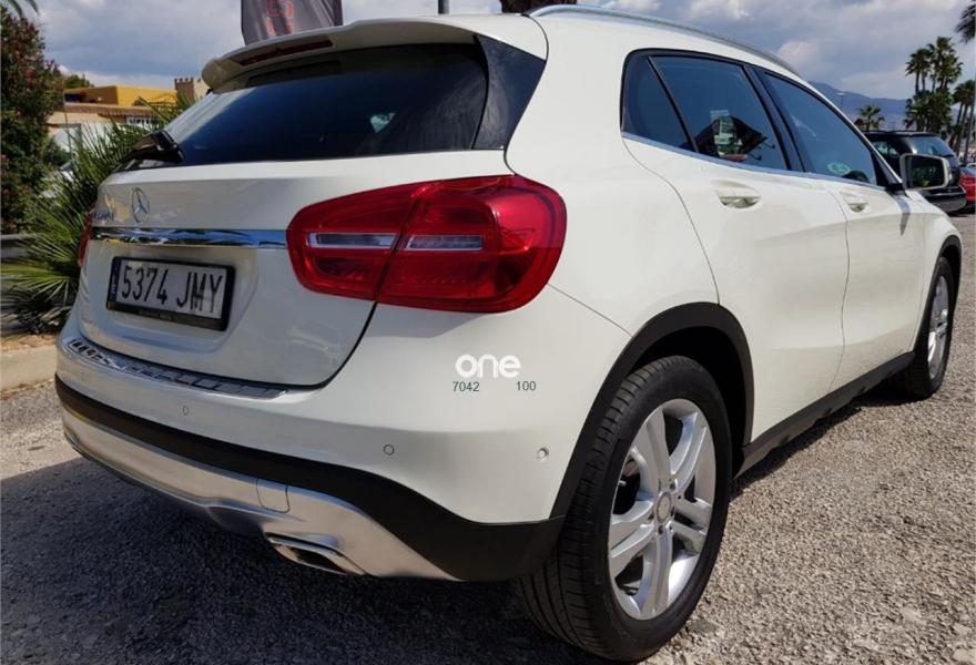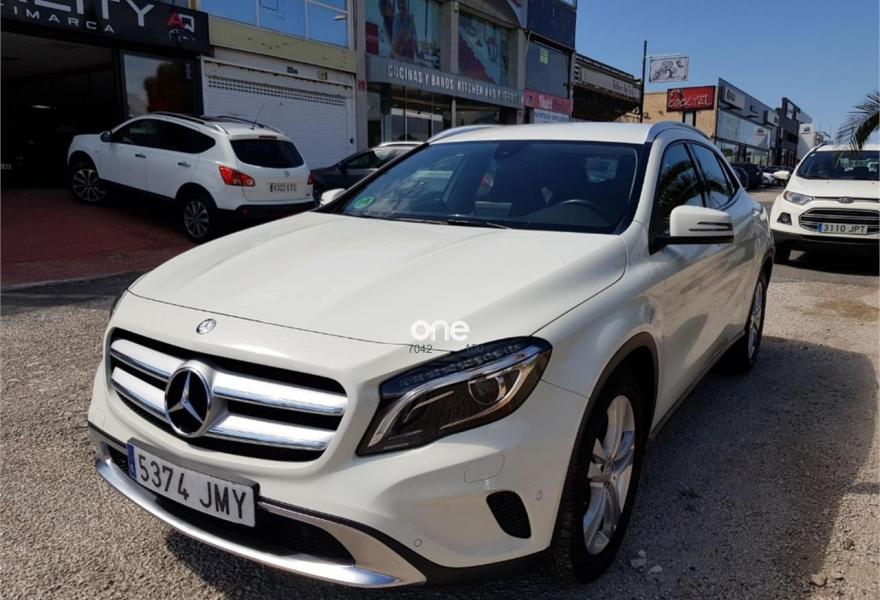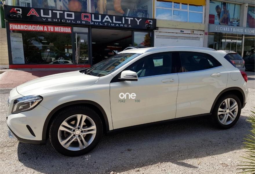 MERCEDES-BENZ Clase GLA, Diesel, año 2016, 53000 kilómetros, color Blanco , precio 26900€. Vehículo nacional con su libro y todas las revisiones pasadas en Mercedes. Con climatizador, asientos deportivos en tela y piel, volante multifunción, control de velocidad, faros bi xenón, cámara de marcha atrás, navegador, sensores de luces, sensores de parking, manos libres para teléfono, avisador de proximidad, sensores de angulo muerto en retrovisores, cambio automático de 7 velocidades, retrovisores retractiles, etc.... Garantía de hasta dos años, Posibilidad de financiación. Benidorm-Albir.