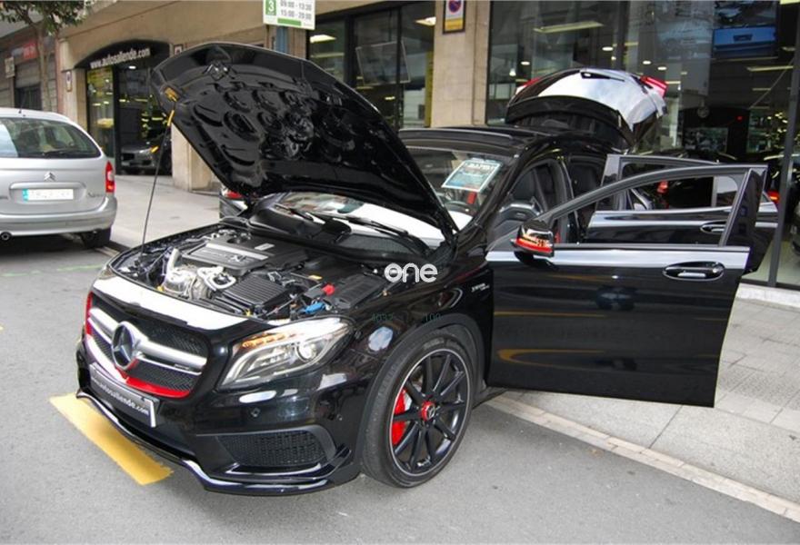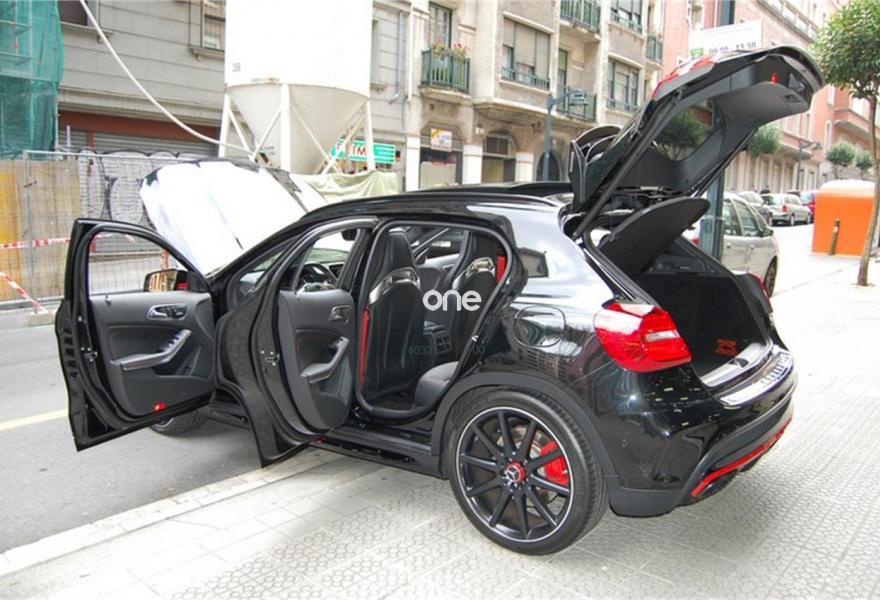 MERCEDES-BENZ Clase GLA, Gasolina, año 2015, 49870 kilómetros, color Negro (negro cromita) metalizado, precio 44999€. Paquete de control de carril,Apoyabrazos abatible y desmontable con portavasos doble en las plazas traseras,Apoyo lumbar con 4 vías de ajuste,Asientos calefactados para conductor y acompañante,Cuero,Cuero negro perforado RED CUT,Moldura de fibra de carbono AMG,Respaldo del acompañante abatible,Becker MAP PILOT,Kit fumador,Módulo de teléfono con Bluetooth (perfil SAP),Radio digital (DAB),Asiento del acompañante con ajuste eléctrico y función memoria,Audio 20 CD con cargador de 6 CDs,Cinturones de seguridad designo color rojo,COMAND Online,COMAND Online con cargador de 6 DVDs,Control del ángulo muerto,Cuero perforado RED CUT negro,Distintivo "4Matic",EASY-PACK,Guía turística,Intelligent Light System,Interfaz universal en apoyabrazos para distintos tipos de audio,KEYLESS-GO,Lavaparabrisas calefactado,Luces de carretera automáticas,Paquete de protección antirrobo,Paquete Exclusivo AMG,Paquete Night,Preequipo para Becker MAP PILOT,Sistema de sonido surround Harman Kardon Logic 7,Sistema PRE-SAFE,Techo corredizo panorámico eléctrico de cristal,Telefonía de confort en apoyabrazos,Alerón trasero AMG,Asiento del conductor con ajuste eléctrico y función memoria,Eliminación del anagrama de modelo en el lateral del pasarruedas,Equipo de escape AMG Performance,Negro Noche (sólido),Pintura metalizada,Retrovisores exteriores de fibra de carbono AMG,Supresión del distintivo de modelo en la tapa del maletero,Tren de rodaje AMG Performance,Detector cambio de carril con aviso por vibración,Airbags laterales en parte trasera,Ayuda activa para aparcar (incluye PARKTRONIC),Cámara marcha atrás con líneas de guía en la pantalla,Neumáticos con propiedades de marcha de emergencia,DISTRONIC PLUS. Full Equiped.