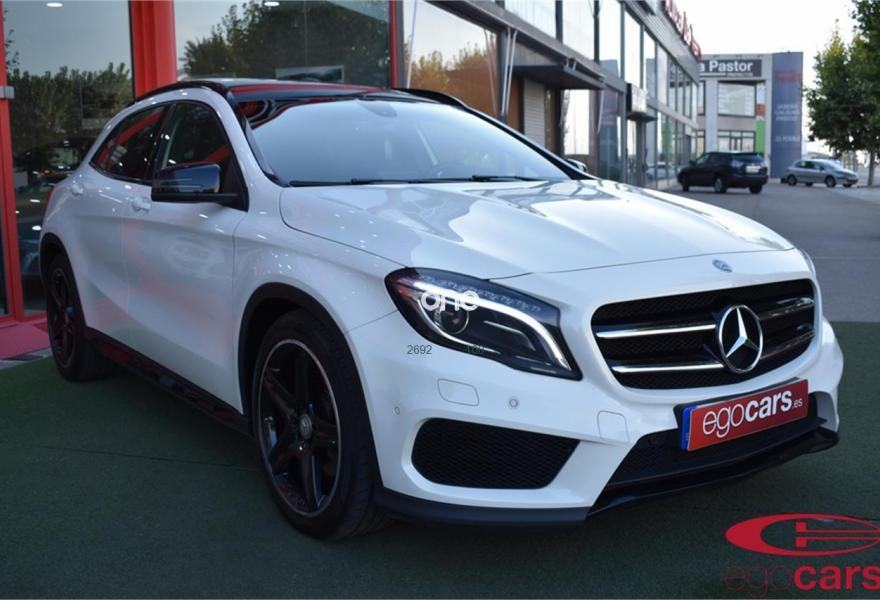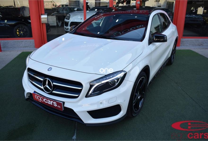 MERCEDES-BENZ Clase GLA, Diesel, año 2014, 138999 kilómetros, color Blanco (CIRRO) metalizado, precio 25999€. Moldura de fibra de carbono AMG,Símil de cuero ARTICO/microfibra DINAMICA,Módulo de teléfono con Bluetooth (perfil SAP),Becker MAP PILOT,Cámara marcha atrás con líneas de guía en la pantalla,Climatizador automático THERMOTRONIC,Intelligent Light System,Kit portaobjetos,Luces de carretera automáticas,Paquete Exclusivo AMG,Paquete Night,Techo corredizo panorámico eléctrico de cristal,Blanco Cirro (sólido),Cristales calorífugos tintados oscuros en ventanillas y luneta trasera,Llantas de aleación AMG de 19" y 5 radios, 235/45,Paquete retrovisores,Pintura metalizada,Ayuda activa para aparcar (incluye PARKTRONIC). MERCEDES BENZ GLA 220CDI 4 MATIC AMG LINE