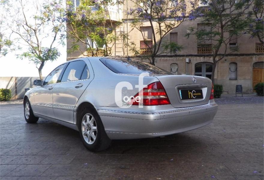 MERCEDES-BENZ Clase S, Diesel, año 2002, 200000 kilómetros, color Gris / Plata metalizado, precio 4990€. Aplicaciones en madera-designo,As.tras.confort (calefac.y ventil.),Asient.tras.indiv.(2 pl.)eléctr.c/memor.,Asiento acomp.multicontorno con masaje,Asiento cond.multicontorno con masaje,Palanca de cambio en cuero/madera,Portavasos,Cuero Nappa exclusivo,Calefacc.eléct.asientos traseros,Calefacc.eléct.asientos delanteros,Asiento multicontorno dinámico pasajero,Asiento multicontorno dinámico conductor,COMAND APS (modulo de navegación),Cambiadiscos CD en maletero,Preinst.para móvil Nokia,Sound-System BOSE,Acondicionador aire parte trasera,Aseguramiento del habitáculo,Calefacción independiente c/mando dist.,Cierre a distancia de tapa del maletero,Distronic,Faros de Bixenón,Linguatronic (sist.m.fónico - español),Llantas 5 radios dobles 7.5Jx17 225/55,Persiana para puertas traseras,Techo corr.elevador de cristal,Sist.control presión neumáticos (RDK),Chapa de protección inferior,Gris Tectita metalizado,Pintura metalizada,As.del.confort (calefac.y ventil.),Suspensión activa ABC,Parktronic. HORARIO DE VERANO, DEL 30/07 AL 31/08 HORARIO INTENSIVO, POR LA TARDE SOLO VISITAS CONCERTADAS.
