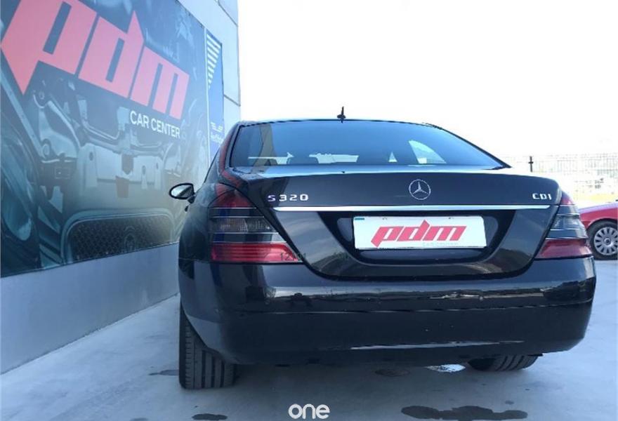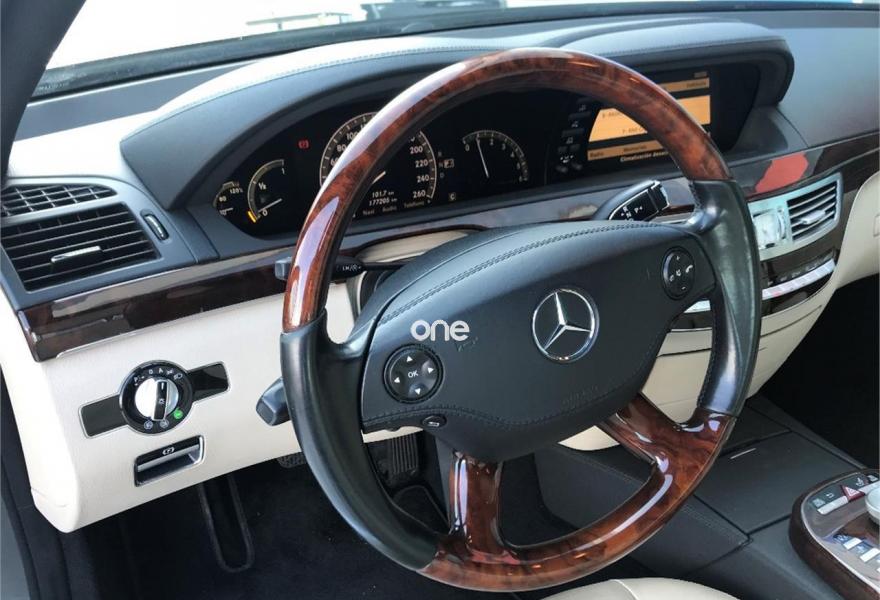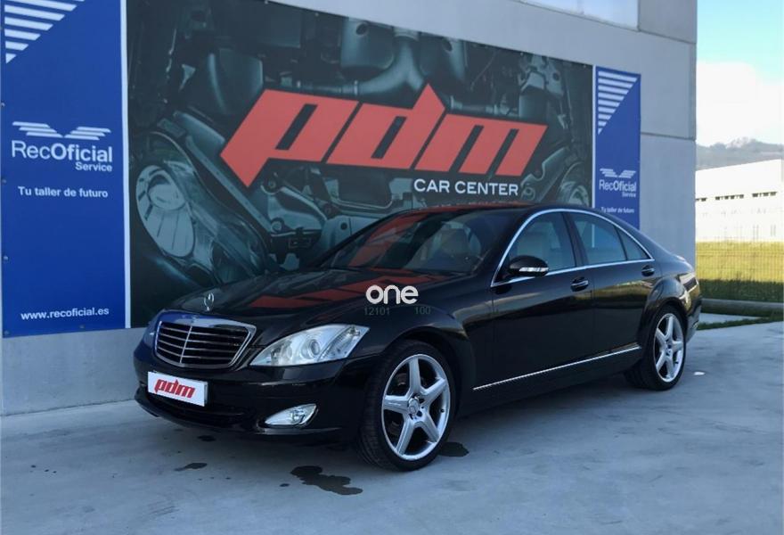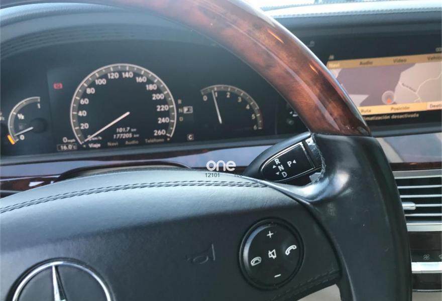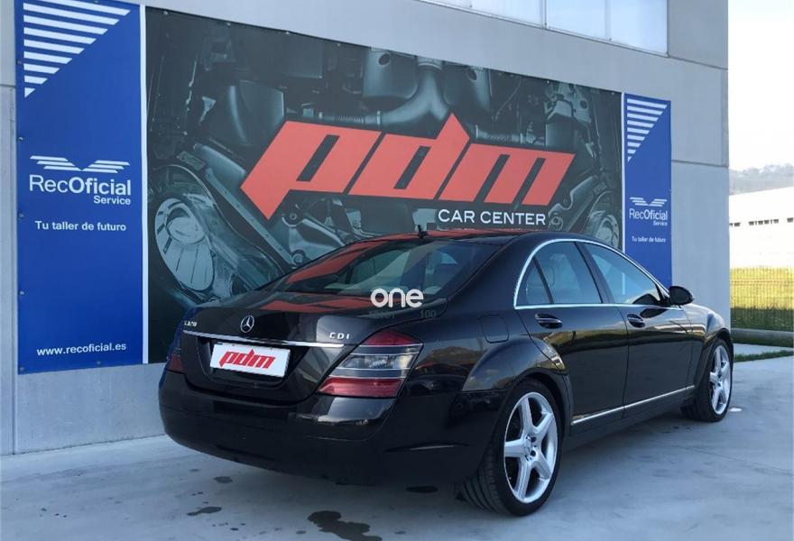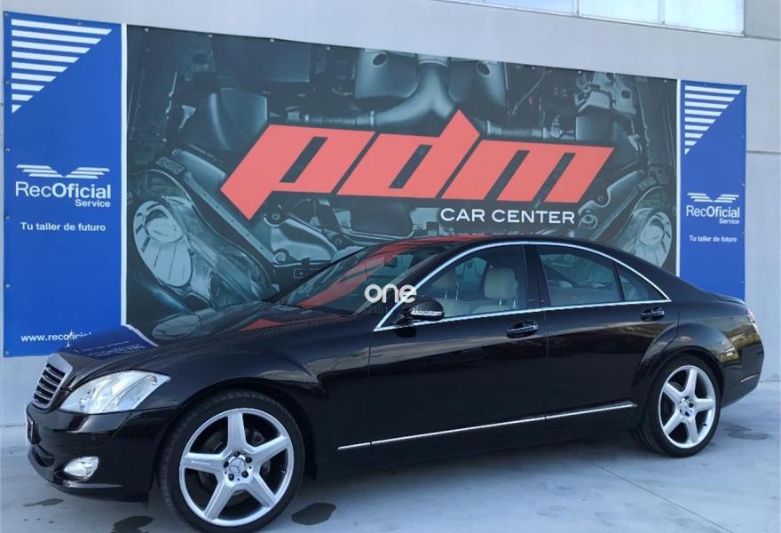 MERCEDES-BENZ Clase S, Diesel, año 2008, 177500 kilómetros, color Negro metalizado, precio 17700€. Alfrombrillas velours color interior,Cuero Beige Sabana/Beige Cachemira,Madera Calyptus,Aire acondicionado en las plazas traseras,Faros de Bixenón con luz adaptativa para curvas, luz de giro y regulación dinámica de alcance e instalación lavafaros,Espejo retrovisor interior y exterior izquierdo antideslumbrante automático,Volante en cuero y madera designo,Pintura metalizada,Parktronic. Mercedes S320 cdi 7G-Tronic. Vehículo nacional con una sola propietaria anterior. Libro de revisiones sellado en servicio oficial Mercedes. Tapicería de cuero en impecable estado. Asientos eléctricos. Climatizador. Navegador. Llantas AMG de 20". Se entrega con el mantenimiento completo hecho y pastillas de freno nuevas. Cambio automático 7G-tronic con mandos detrás del volante. Parktronic delantero y trasero. Freno de mano eléctrico, volante en cuero y madera. Inserciones de madera a lo largo de todo el vehículo. Muy buen estado general. Se entrega transferido y con un año de garantía. Posibilidad de financiar. PDM Car Center.