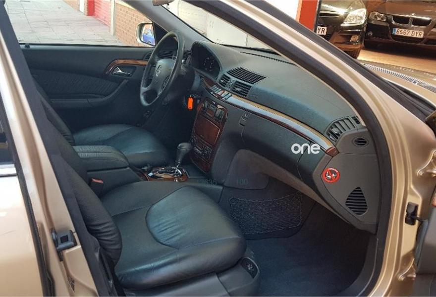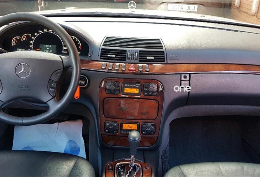 MERCEDES-BENZ Clase S, Diesel, año 2002, 292000 kilómetros, color Gris / Plata (Champagne) metalizado, precio 5900€. 12 Meses de garantía a nivel nacional, un solo propietario, kilómetros garantizados, climatizador bizona,tapicería de piel en muy buen estado, automático, asientos eléctricos y calefactables, control y limitador de velocidad, sensor de luces, teléfono manos libres, suspensión neumática, volante multifuncion, cargador de cds, etc