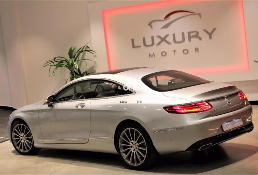 MERCEDES-BENZ Clase S, Gasolina, año 2015, 28000 kilómetros, color Gris / Plata ((( PACK AMG - RE-ESTRENO - FULL ))) metalizado, precio 99950€. Techo panorámico con MAGIC SKY CONTROL,Cuero napa,Cargador de 6 DVDs,Radio Digital (DAB),SPLITVIEW,AMG Line,Paquete Keyless Go,AMG Line Plus,Llantas de aleación multirradio color plata tulio de 20", 245/40, 275/35. ESPECTACULAR UNIDAD RE-ESTRENO DE “” MERCEDES-BENZ S-500 COUPE *455cv* 4-MATIC **PACK AMG** “”{[n]}{[n]}VEHÍCULO NACIONAL Y UNICO PROPIETARIO. MANTENIMIENTOS AL DÍA EN SERVICIO OFICIAL MERCEDES-BENZ.{[n]}{[n]}LUJO Y DEPORTIVIDAD SE DAN LA MANO EN ESTA BERLINA DEPORTIVA DE MERCEDES-BENZ.{[n]}{[n]}CERTIFICADOS OFICIALES DE NO SINIESTRALIDAD Y KILOMETRAJE.{[n]}{[n]}PRECIO VEHÍCULO NUEVO 165.000€ !!!!! . MÁS DE 20.000€ EN EQUIPAMIENTO OPCIONAL.{[n]}{[n]}Equipamiento:{[n]}{[n]}-Paquete Deportivo AMG{[n]}-Faros LED Intelligent Light System{[n]}-Sistema de Navegación Profesional{[n]}-Techo Solar Panorámico MAGIC SKY{[n]}-Paquete de Iluminación Interior{[n]}-Asientos Confort con Memoria{[n]}-Asientos Calefactados{[n]}-Asientos Ventilados{[n]}-Paquete Cámaras 360º{[n]}-Llantas AMG 20”{[n]}-Volante AMG con Levas{[n]}-Distronic{[n]}-Portón Maletero Eléctrico{[n]}-Sistema Key-Less Go{[n]}-Suspensión Neumática{[n]}-Reproductor de DVD{[n]}-Alarma Volumétrica Mercedes-Benz{[n]}-Absorción de Puertas{[n]}-Control de Carril{[n]}-Sistemas PRE-SAFE{[n]}-LINGUATRONIC{[n]}-Neumáticos CONTINENTAL....